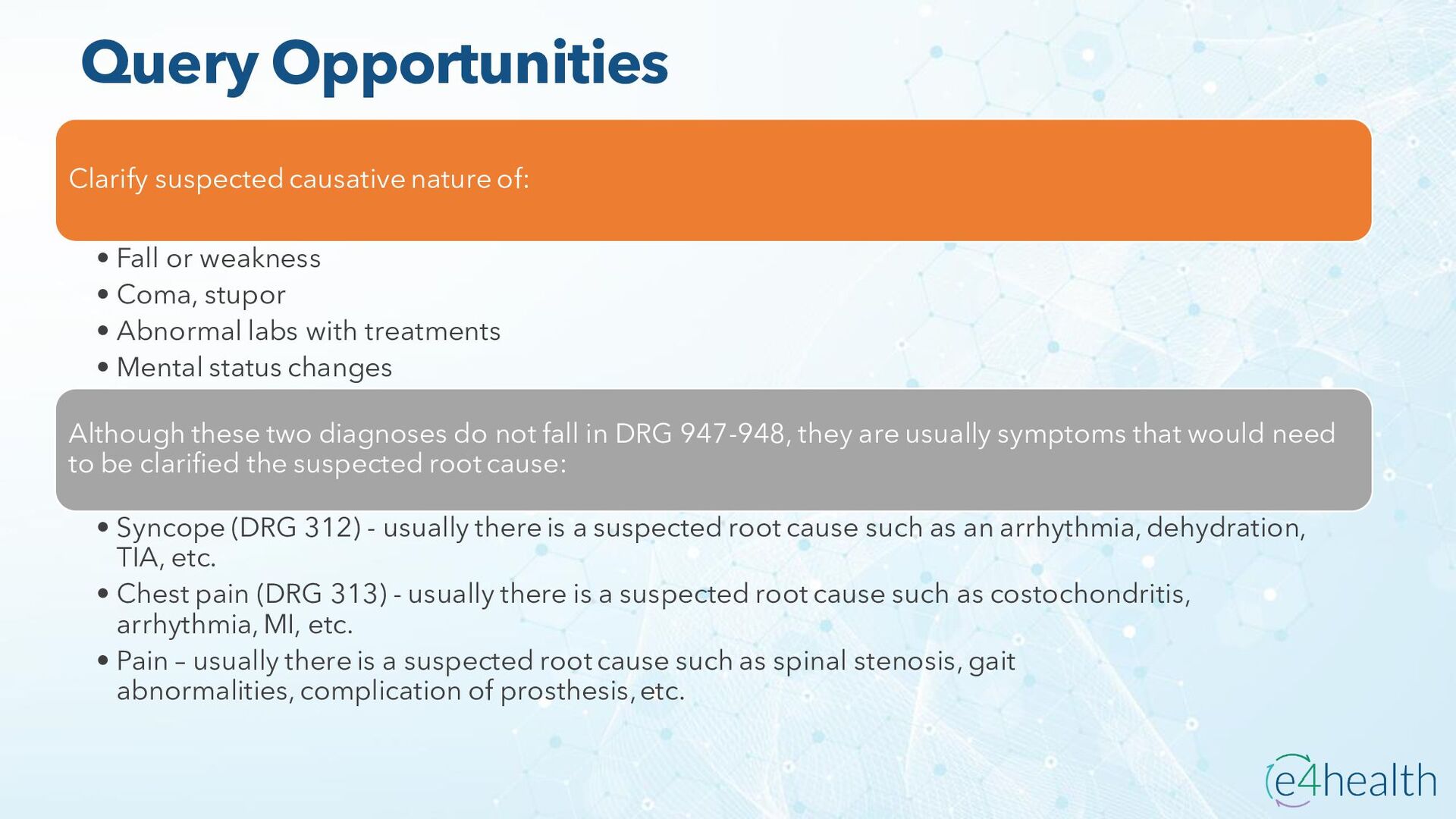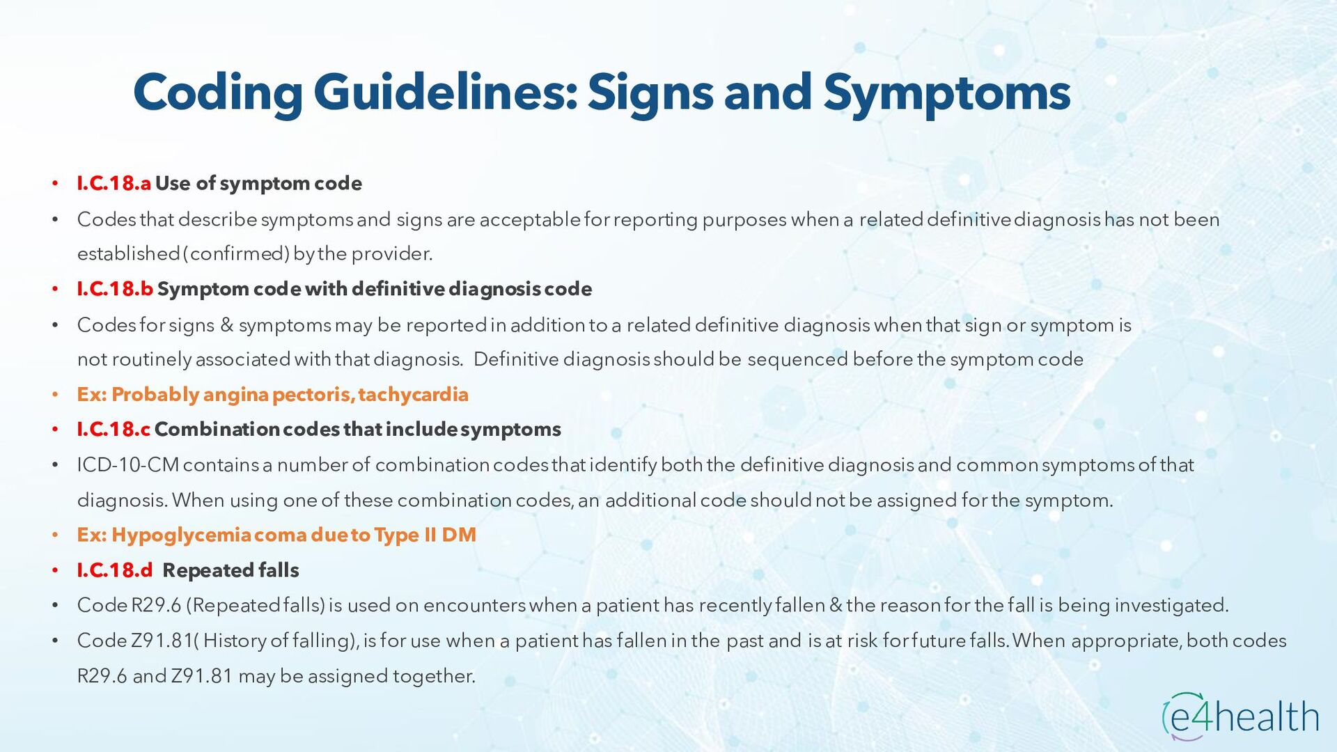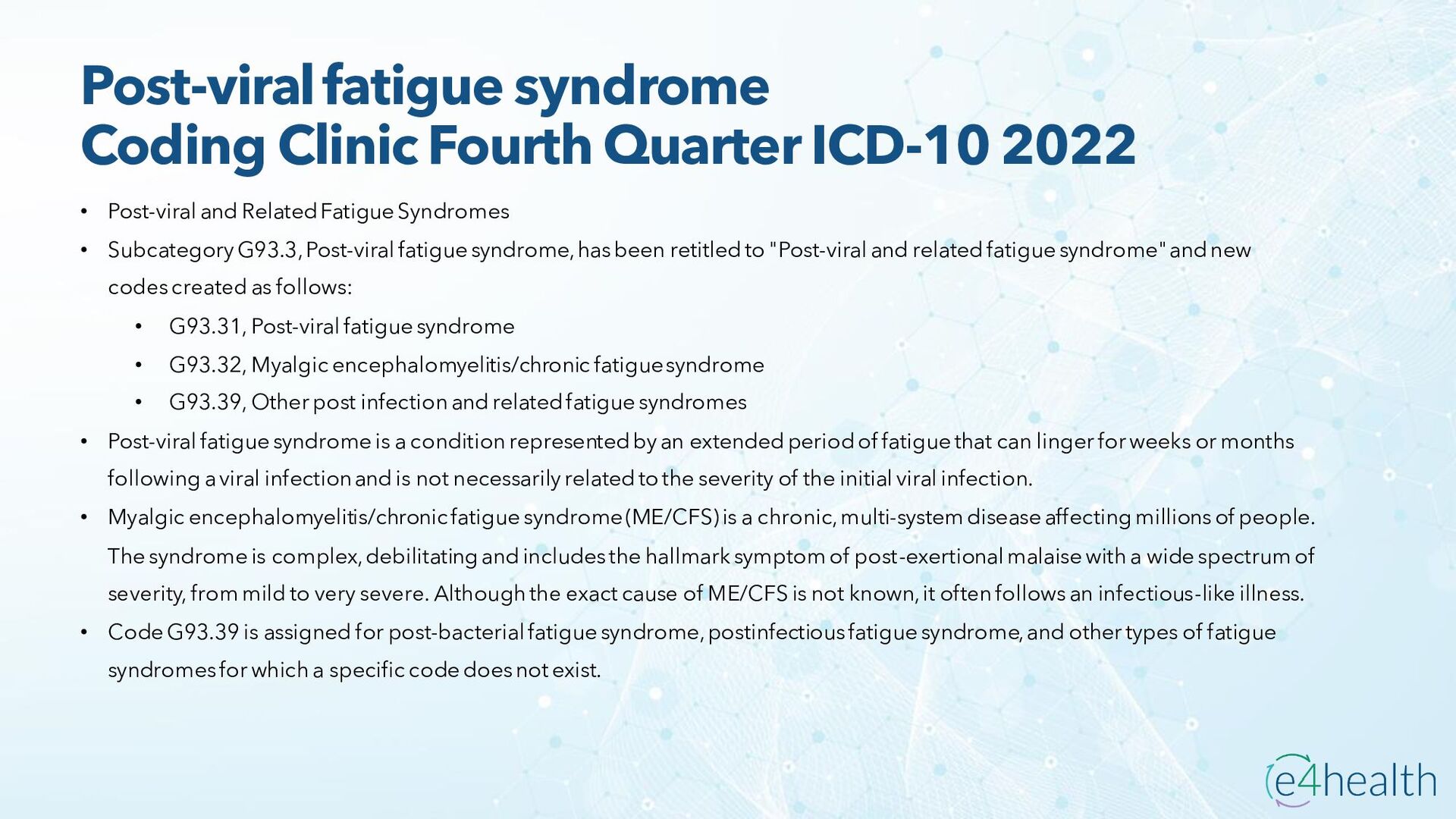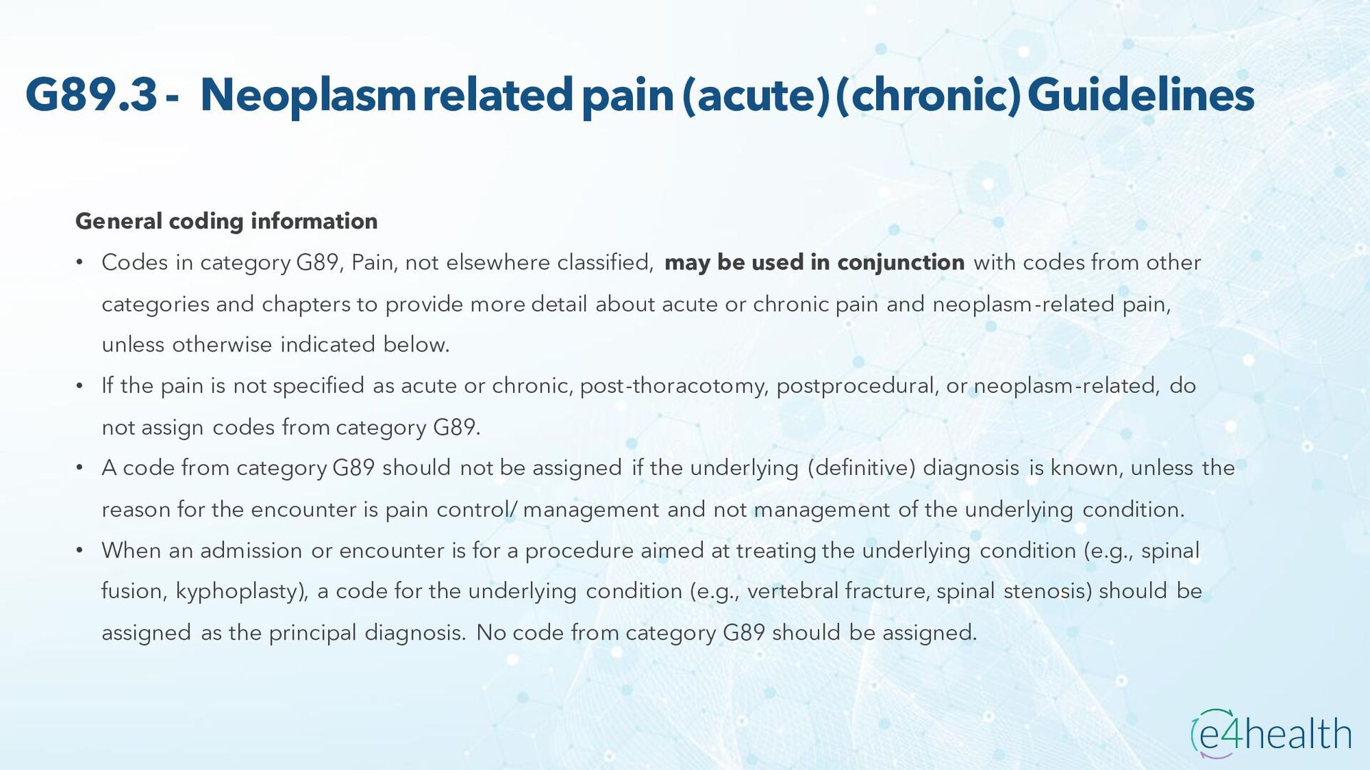 • Coding Clinic for ICD-10-CM/PCS, Fourth Quarter 2017: Page 23 – Pediatric Glasgow Coma Scale (PGCS) • New inclusion terms have been added to codes in subcategories of the Coma Scale for verbal response and motor response to clarify the usage for pediatric patients. • The Pediatric Glasgow Coma Scale (PGCS) is used to assess the mental state of child patients. As with the Glasgow Coma Scale (GCS), the PGCS is comprised of three tests: eye, verbal, and motor responses. • No changes were made for subcategory R40.21, Coma scale, eyes open. • The following new inclusion terms are provided at the corresponding codes from subcategory R40.23, Coma scale, best motor response, for newborns and children through 5 years of age: • R40.232, Coma scale, best motor response, extension ▪ Abnormal extensor posturing to pain or noxious stimuli (< 2 years of age) ▪ Extensor posturing to pain or noxious stimuli (2-5 years of age) • R40.233, Coma scale, best motor response, abnormal ▪ Abnormal flexure posturing to pain or noxious stimuli (0-5 years of age) ▪ Flexion/decorticate posturing (< 2 years of age) • R40.234, Coma scale, best motor response, flexion withdrawal ▪ Withdraws from pain or noxious stimuli (0-5 years of age) • R40.235, Coma scale, best motor response, localizes pain ▪ Localizes pain (2-5 years of age) ▪ Withdraws to touch (< 2 years of age) • R40.236, Coma scale, best motor response, obeys commands ▪ Normal or spontaneous movement (< 2 years of age) ▪ Obeys commands (2-5 years of age)