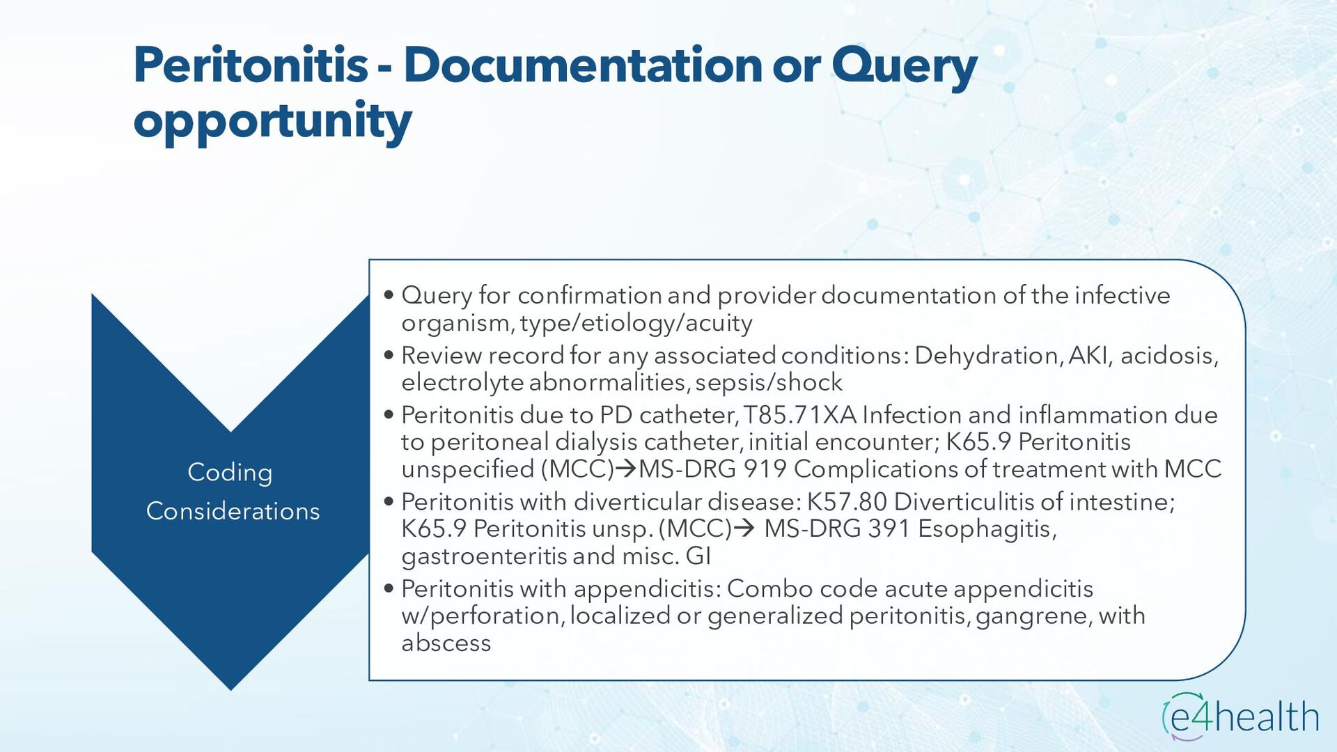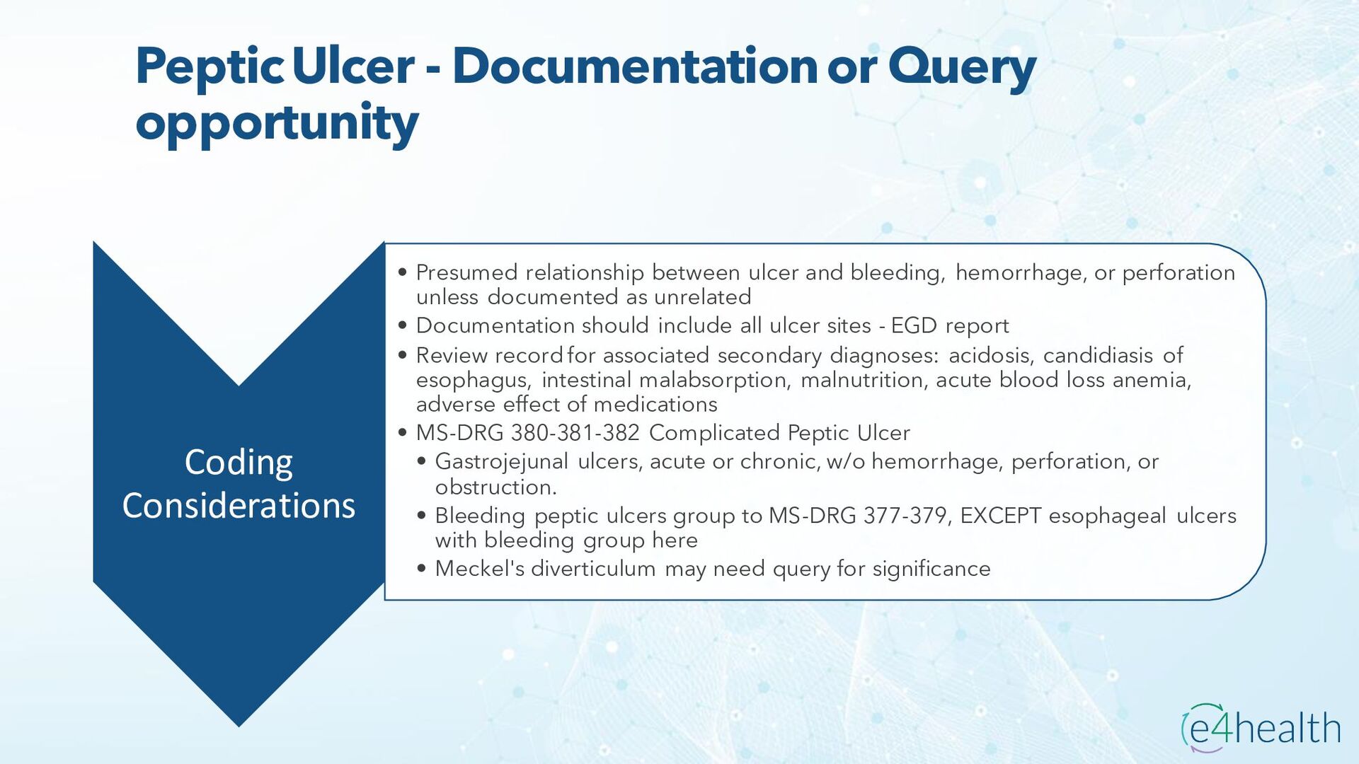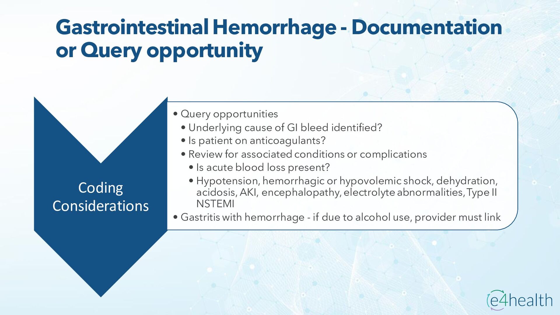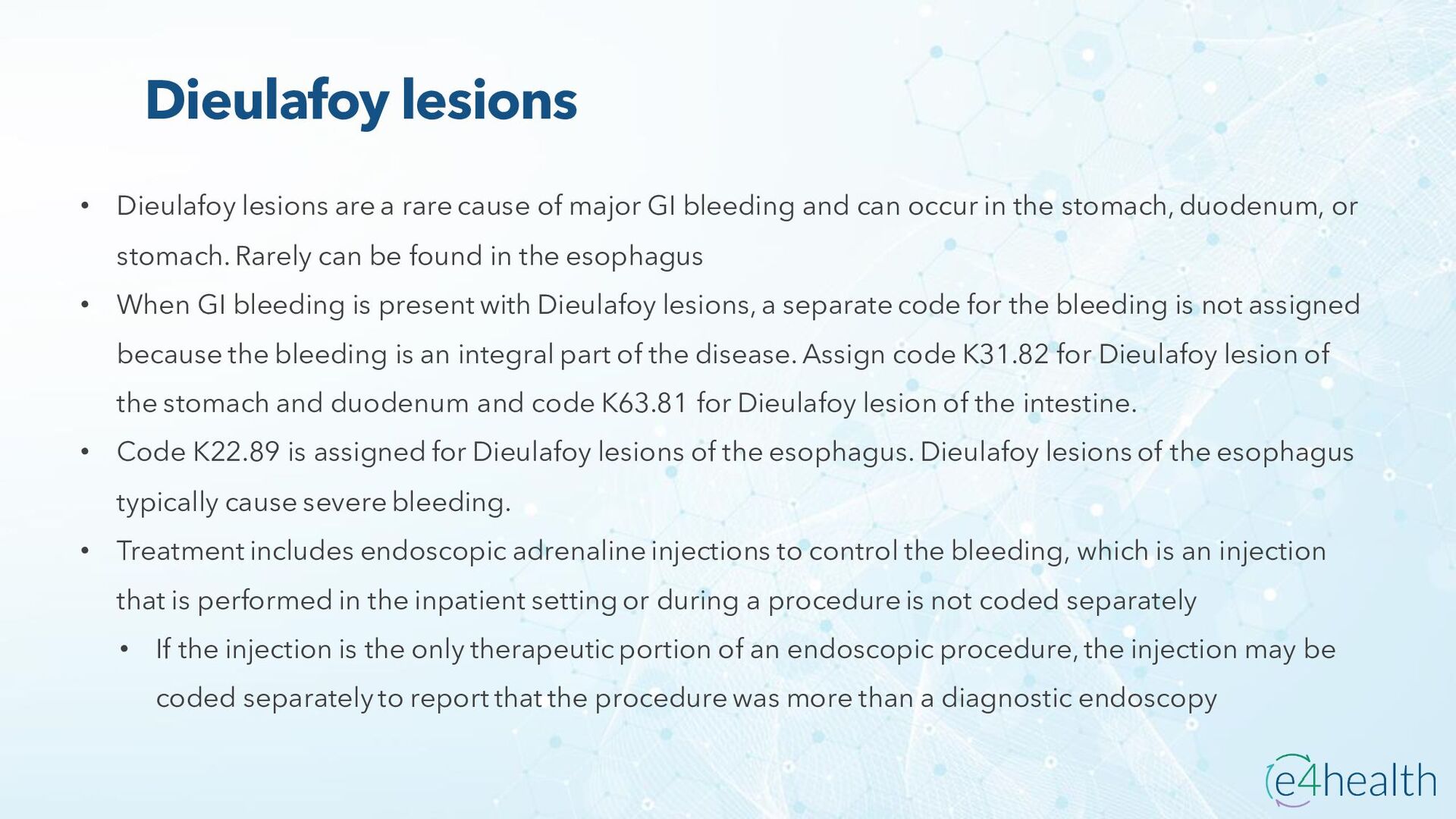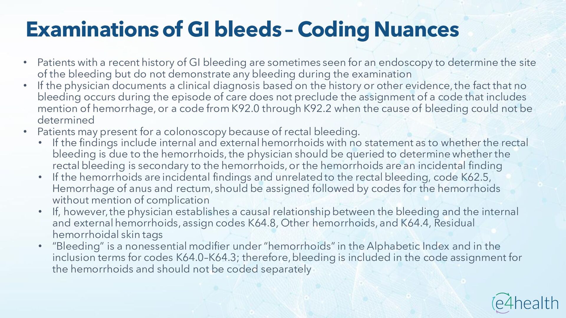 Second Quarter 2002 Page 4 • Question: What is the correct principal diagnosis code when a patient is admitted for a hematemesis, which is found to be due to a gastric varix that is caused by alcoholic cirrhosis/hepatitis? The patient also had esophageal varices without active bleeding. Creation of trans-jugular intrahepatic portosystemic shunt (TIPS) was carried out. Would code 456.8, Varices of other specified sites, be assigned as the principal diagnosis? Or, should the cirrhosis/hepatitis be assigned as the principal diagnosis following the coding logic for esophageal varix? • Answer: Assign code 456.8, Varices of other specified sites, as the principal diagnosis. Since the bleeding is due to the gastric varices, the varices should be listed as the principal diagnosis. Also, assign code 578.0, Hematemesis, to identify the gastrointestinal bleeding. Code 303.90, Other and unspecified alcohol dependence, unspecified, Code 571.2, Alcoholic cirrhosis of liver, code 571.1, Acute alcoholic hepatitis, and code 456.21, Esophageal varices in diseases classified elsewhere, without mention of bleeding, should be assigned as secondary diagnoses. Assign code 39.1, Intra- abdominal venous shunt, for the creation of the TIPS. NOTE: Although this is in ICD-9-CM coding clinic convention, at current date, this coding clinic is applicable in ICD-10-CM convention