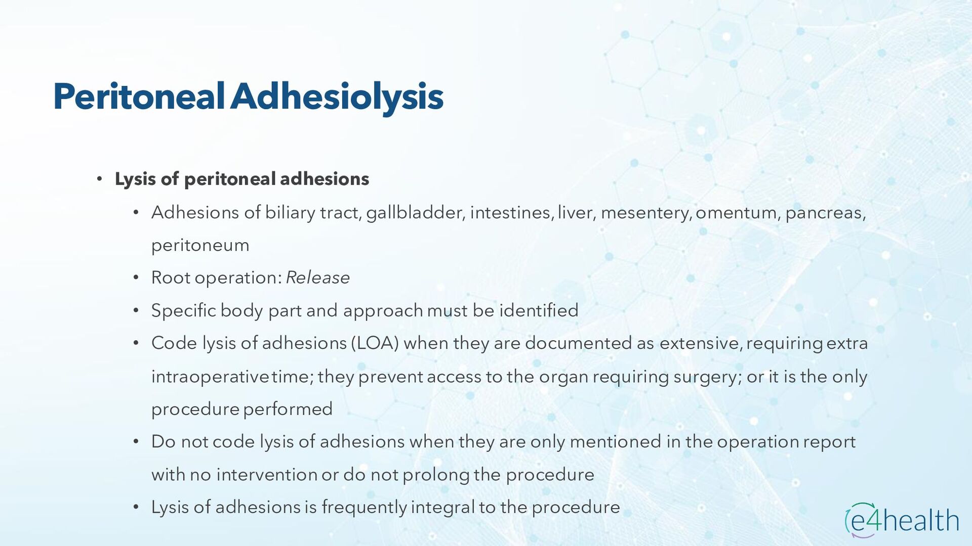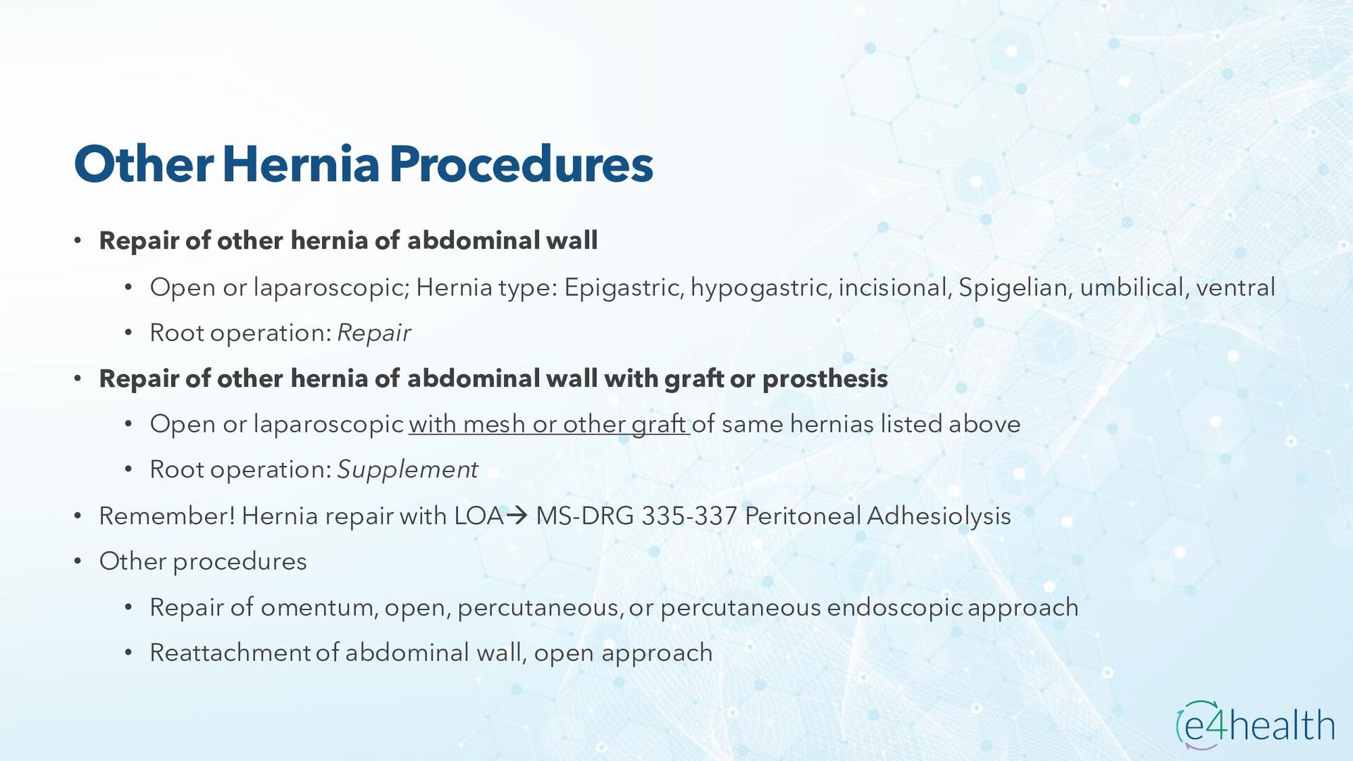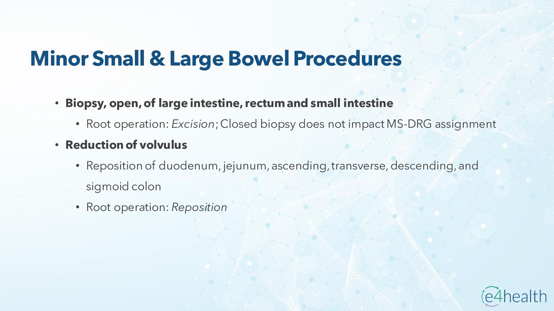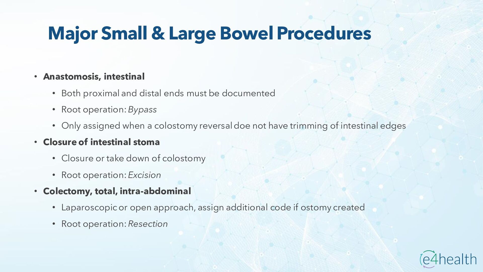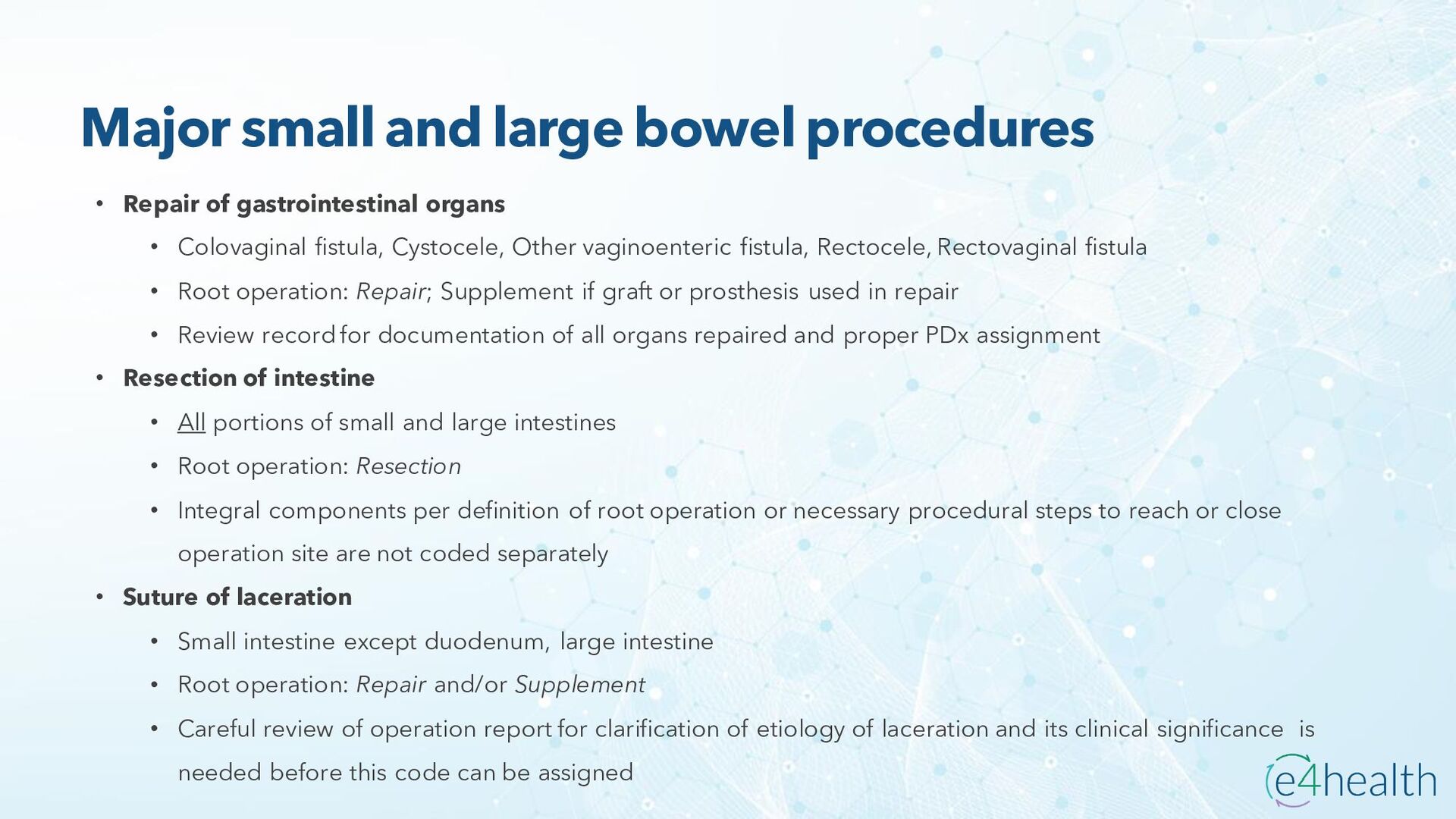 competence, other procedures • Fundoplication, gastric cardioplasty, Nissen fundoplication • Root operation: Restriction • Excision of stomach via percutaneous endoscopic approach (diagnostic) • Includes percutaneous approach; Diagnostic, vertical • Excision or Destruction of lesion or tissue, pharynx and Division, tongue, palate, pharynx muscle • Repair of Zenker’s diverticulum • Root operation: Division, Excision or Repair • Gastrectomy, partial, with anastomosis to jejunum • Billroth II • Root operation: Bypass, Excision • Gastrectomy, partial, with anastomosis to duodenum • Billroth I, distal gastrectomy, gastro-pylorectomy • Review op report for total (Resection) or partial (Excision) removal of stomach