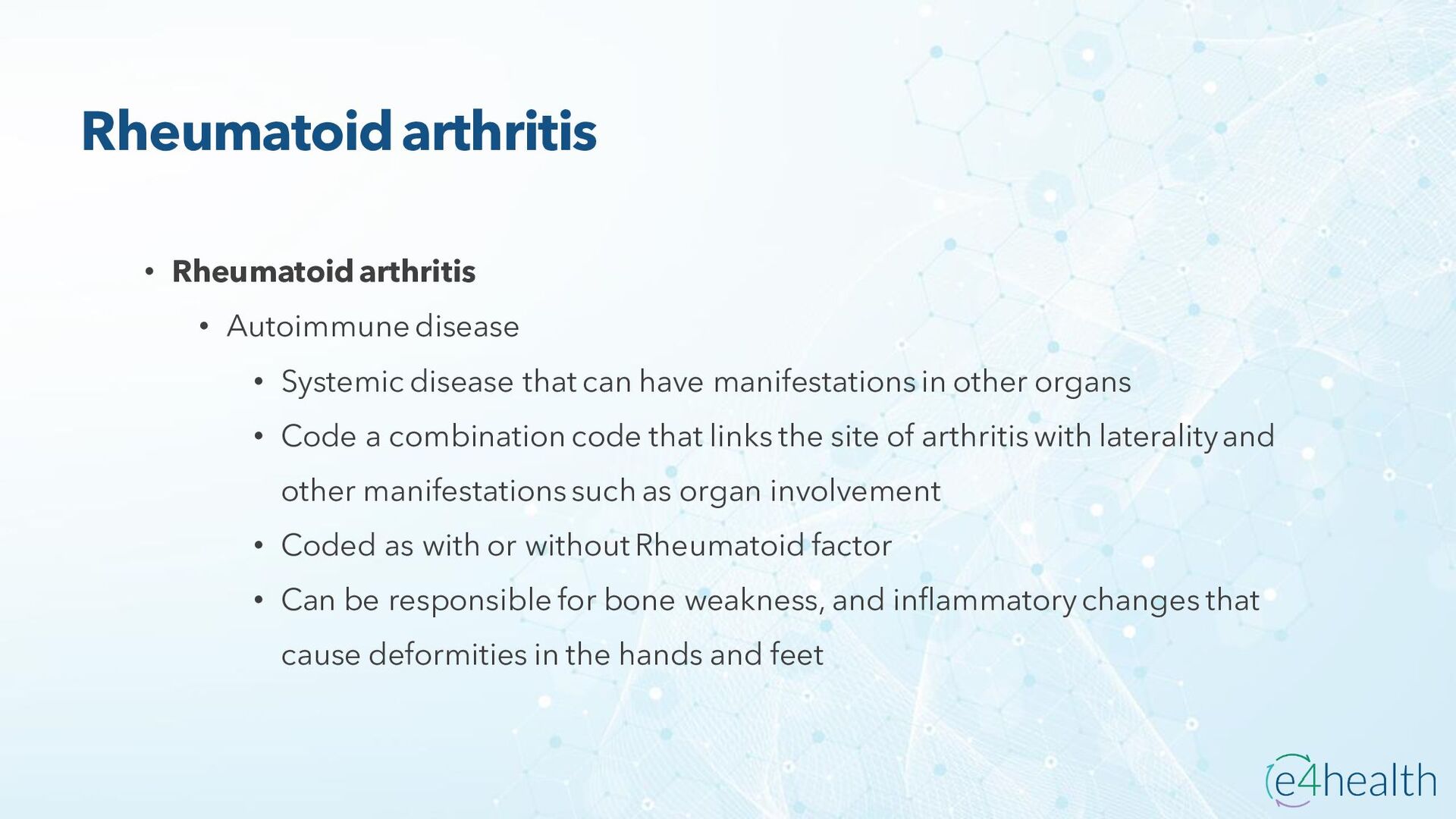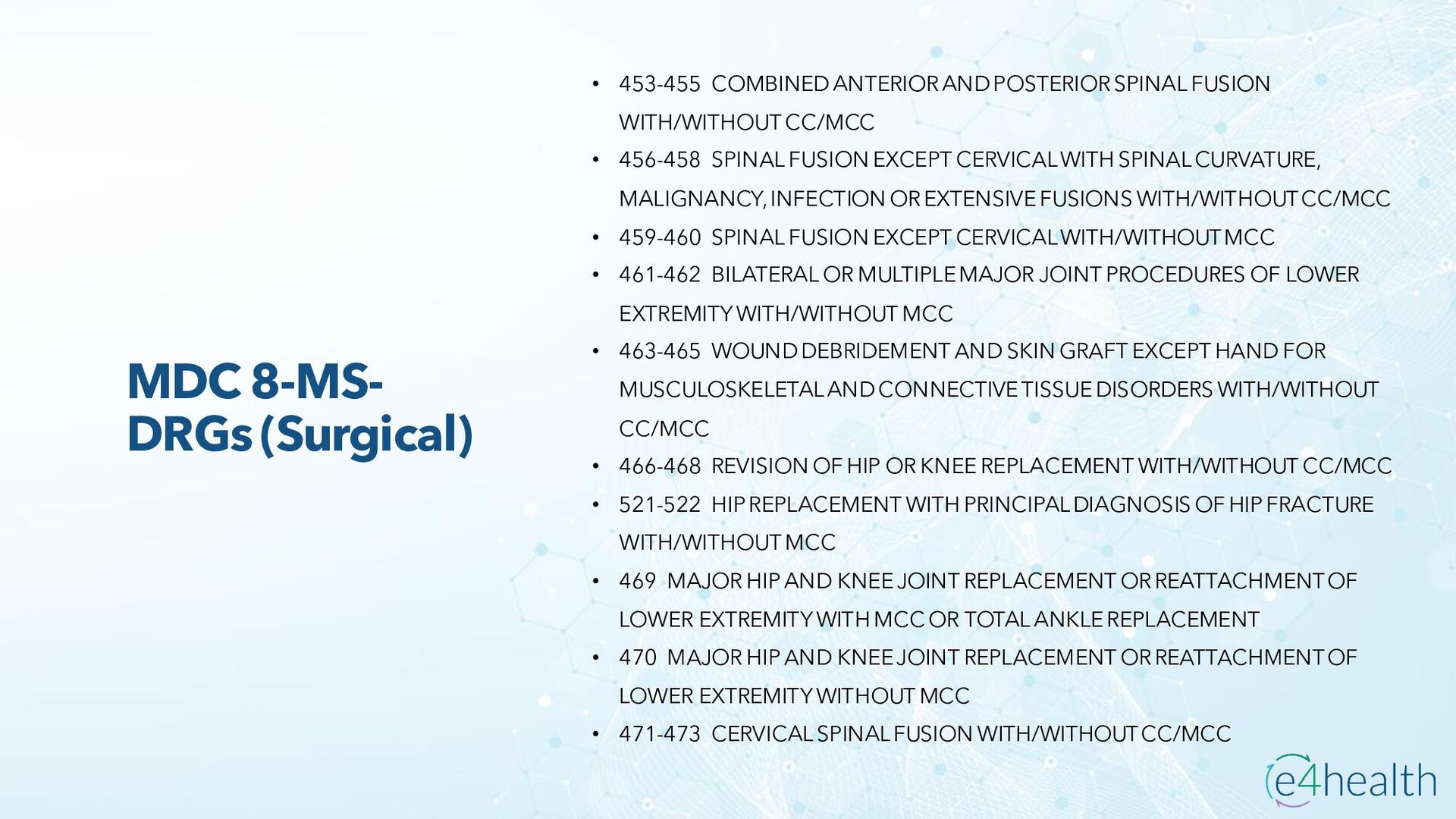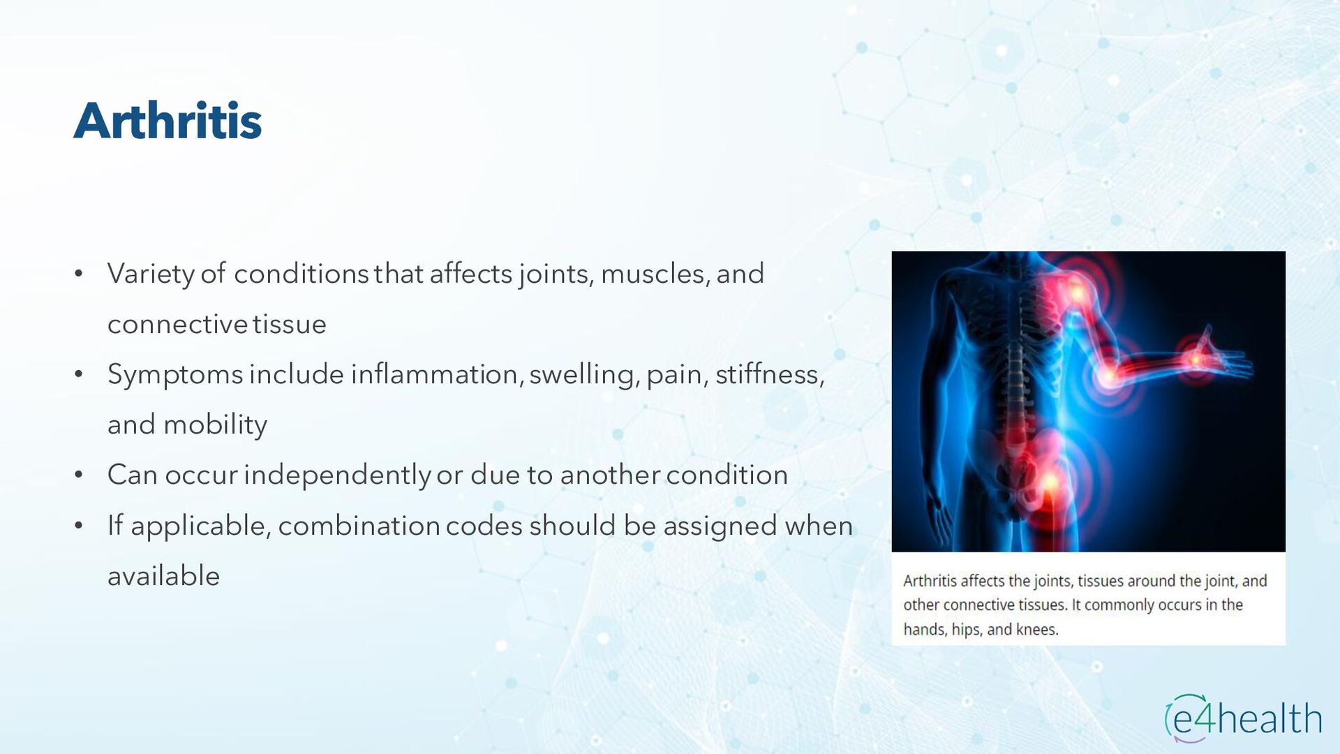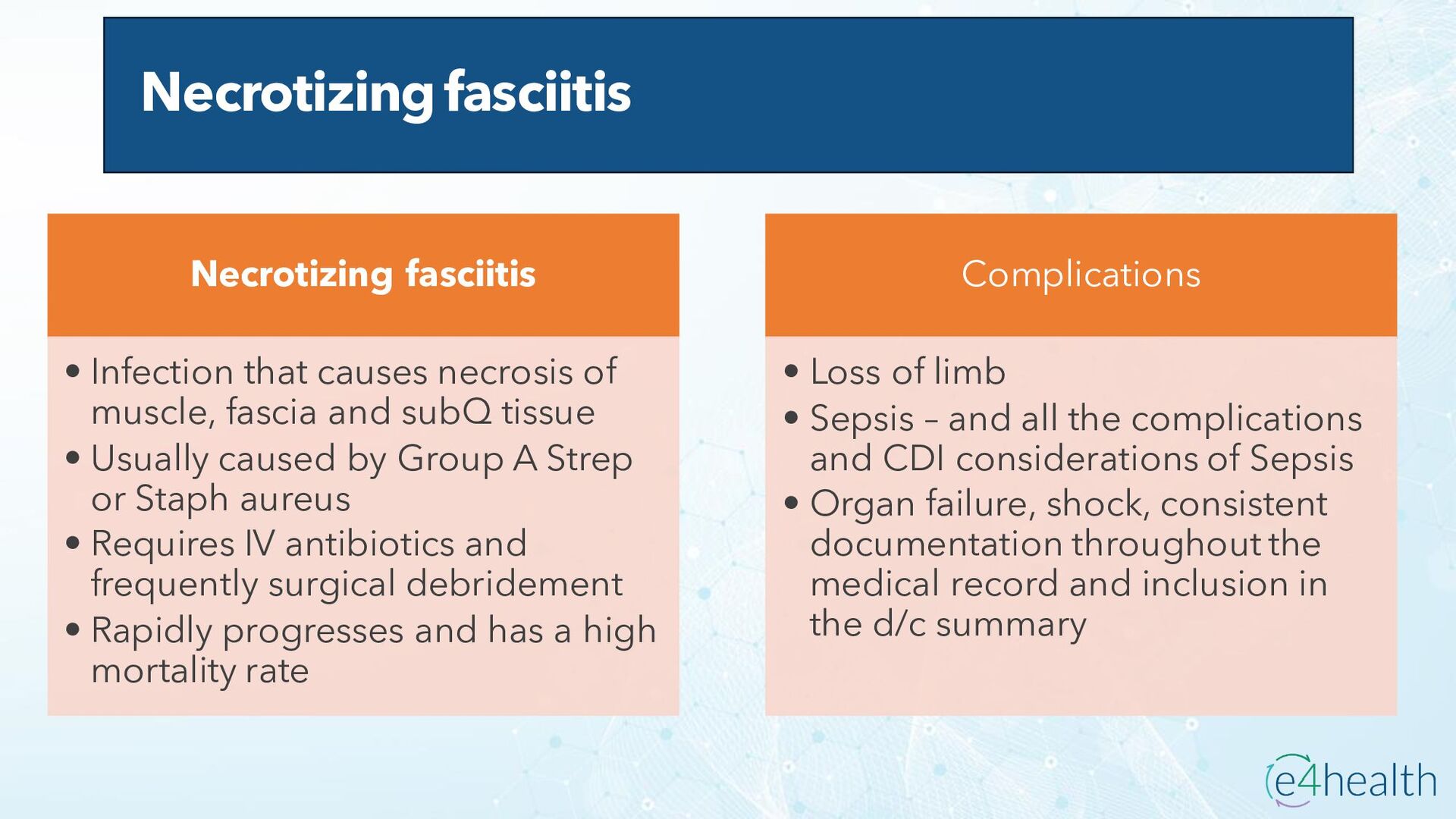 https://www.hopkinsmedicine.org/health/conditions -and- diseases/ankylosing-spondylitis • Chauhan K, Jandu JS, Brent LH, et al. Rheumatoid Arthritis. [Updated 2023 Jan 10]. In: StatPearls [Internet]. Treasure Island (FL): StatPearls Publishing; 2023 Jan-. Available from: https://www.ncbi.nlm.nih.gov/books/NBK441999/ • Chen, Leon L. DNP, AGACNP-BC, FCCP, FAANP, FNYAM; Fasolka, Brian PhD, RN, CEN; Treacy, Caitlin MS, AGACNP-BC. Necrotizing fasciitis: A comprehensive review. Nursing 50(9):p 34-40, September 2020. | DOI: 10.1097/01.NURSE.0000694752.85118.62 • Earwood, J. S. (n.d.). Septic Arthritis: Diagnosis and Treatment. AAFP. https://www.aafp.org/pubs/afp/issues/2021/1200/p589.html#afp20211200p589-t1 • Facr, W. C. S. J. M. F. (2023, April 17). Aseptic Necrosis Causes, Symptoms, Treatment, Medications, Prevention. MedicineNet. https://www.medicinenet.com/aseptic_necrosis/article.htm • Gastrointestinal stromal tumor: MedlinePlus Genetics. (n.d.). https://medlineplus.gov/genetics/condition/gastrointestinal-stromal- tumor/#:~:text=A%20gastrointestinal%20stromal%20tumor%20%28GIST%29%20is%20a%20type,of%20Cajal%20%28ICCs%29%20or %20precursors%20to%20these%20cells. • Groner, L. K., Green, D. J., Weisman, S. V., Legasto, A. C., Toy, D., Gruden, J. F., & Escalon, J. G. (2021). Thoracic Manifestations of Rheumatoid Arthritis. Radiographics, 41(1), 32–55. https://doi.org/10.1148/rg.2021200091