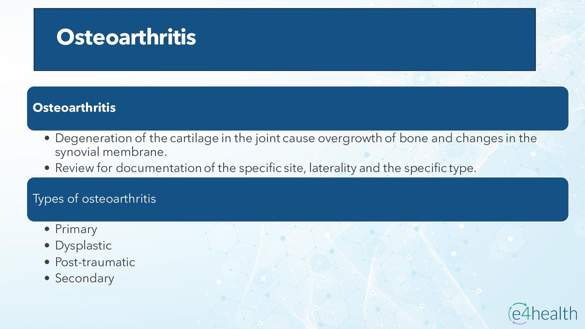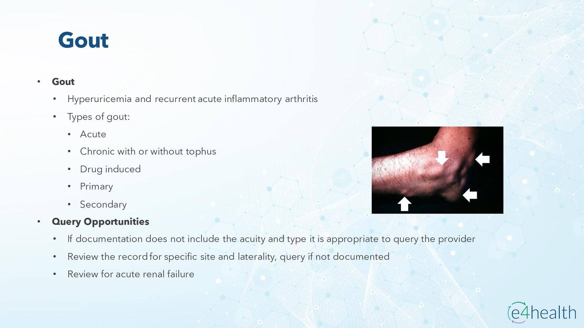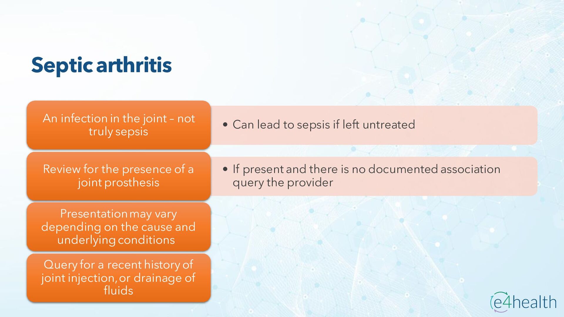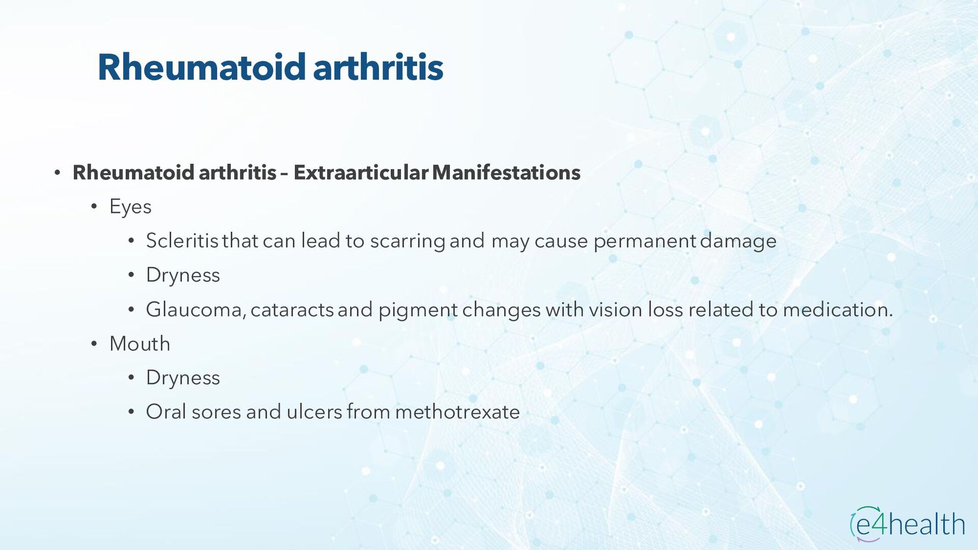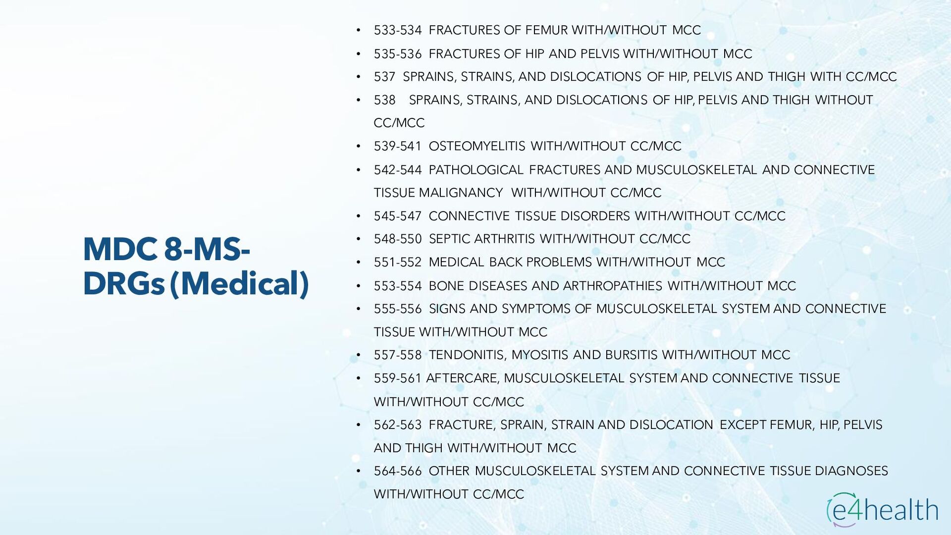 https://www.hopkinsmedicine.org/health/conditions -and- diseases/ankylosing-spondylitis • Chauhan K, Jandu JS, Brent LH, et al. Rheumatoid Arthritis. [Updated 2023 Jan 10]. In: StatPearls [Internet]. Treasure Island (FL): StatPearls Publishing; 2023 Jan-. Available from: https://www.ncbi.nlm.nih.gov/books/NBK441999/ • Chen, Leon L. DNP, AGACNP-BC, FCCP, FAANP, FNYAM; Fasolka, Brian PhD, RN, CEN; Treacy, Caitlin MS, AGACNP-BC. Necrotizing fasciitis: A comprehensive review. Nursing 50(9):p 34-40, September 2020. | DOI: 10.1097/01.NURSE.0000694752.85118.62 • Earwood, J. S. (n.d.). Septic Arthritis: Diagnosis and Treatment. AAFP. https://www.aafp.org/pubs/afp/issues/2021/1200/p589.html#afp20211200p589-t1 • Facr, W. C. S. J. M. F. (2023, April 17). Aseptic Necrosis Causes, Symptoms, Treatment, Medications, Prevention. MedicineNet. https://www.medicinenet.com/aseptic_necrosis/article.htm • Gastrointestinal stromal tumor: MedlinePlus Genetics. (n.d.). https://medlineplus.gov/genetics/condition/gastrointestinal-stromal- tumor/#:~:text=A%20gastrointestinal%20stromal%20tumor%20%28GIST%29%20is%20a%20type,of%20Cajal%20%28ICCs%29%20or %20precursors%20to%20these%20cells. • Groner, L. K., Green, D. J., Weisman, S. V., Legasto, A. C., Toy, D., Gruden, J. F., & Escalon, J. G. (2021). Thoracic Manifestations of Rheumatoid Arthritis. Radiographics, 41(1), 32–55. https://doi.org/10.1148/rg.2021200091