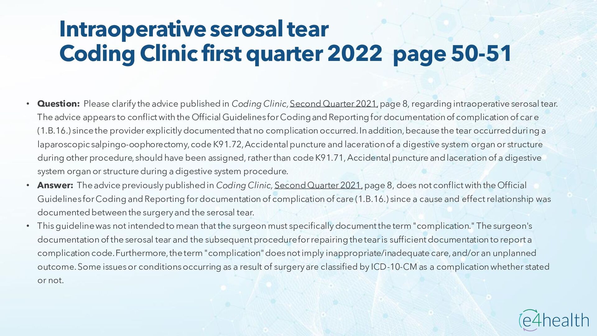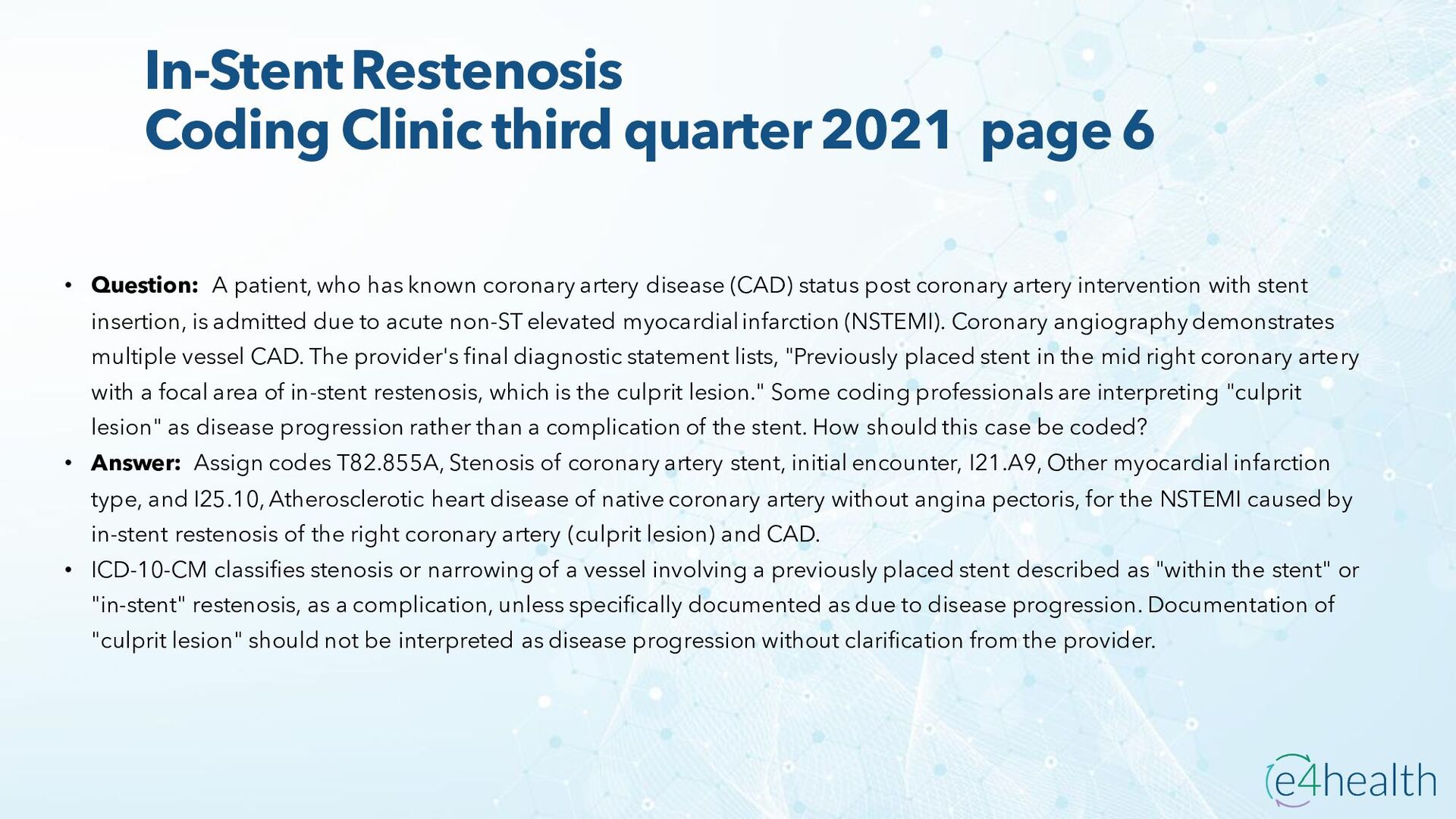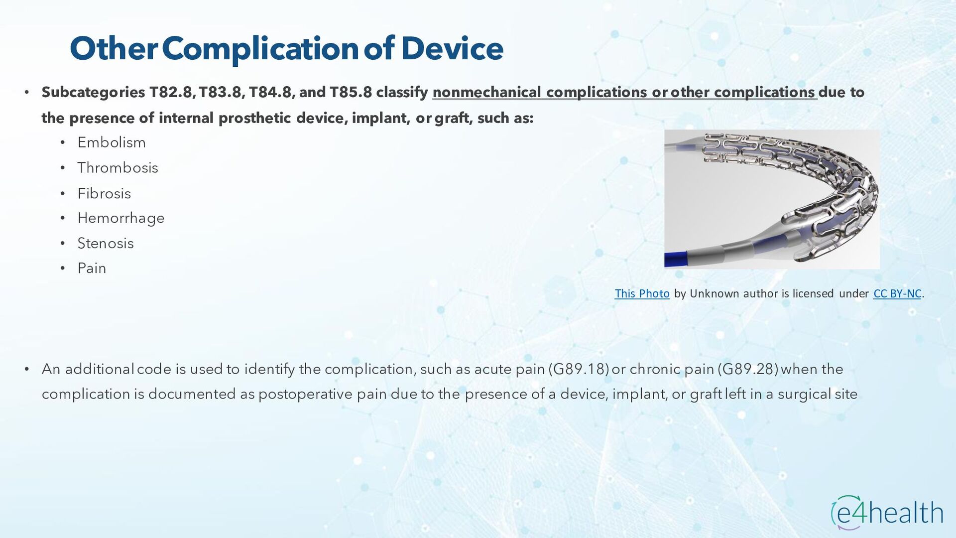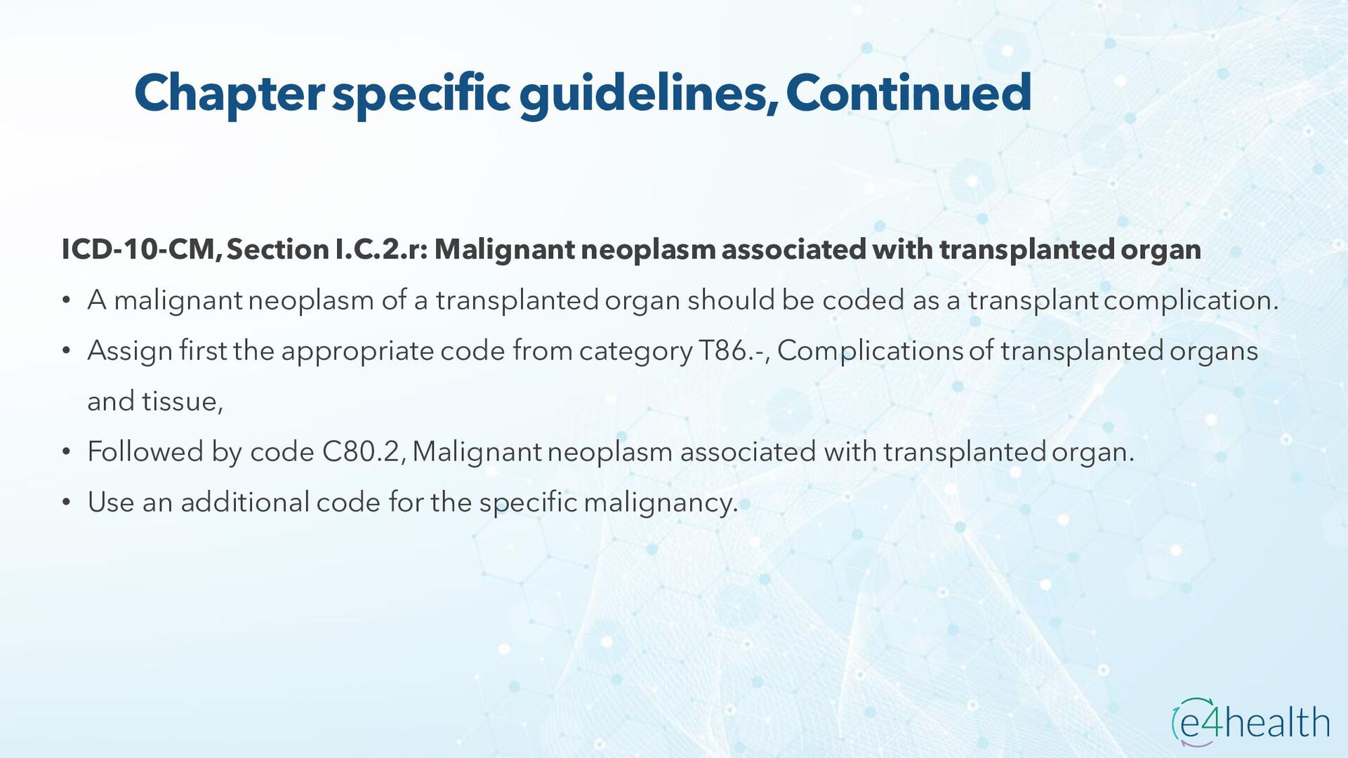 page 31-33 • A new subcategory M96.A, Fracture of ribs, sternum and thorax associated with compression of the chest and CPR has been created with new codes to specifically identify thoracic fractures due to performance of CPR and chest compressions as follows • M96.A1, Fracture of sternum associated with chest compression and cardiopulmonary resuscitation (CPR) • M96.A2, Fracture of one rib associated with chest compression and CPR • M96.A3, Multiple fractures of ribs associated with chest compression and CPR • M96.A4, Flail chest associated with chest compression and CPR • M96.A9, Other fracture associated with chest compression and CPR • Fractures of the rib are a known risk and a common occurrence, following closed chest compression. Elderly patients and persons with pre- existing medical conditions, such as osteoporosis, have an increased risk for this type of injury. Reports indicate that the incidence of rib fractures in adults due to the performance of conventional CPR ranges from 13% to 97%, and of sternal fractures from 1% to 43%. When providing external chest pressure to support perfusion to the brain or other vital organs, rib fractures may be an unavoidable occurrence. • Question: An 89-year-old female patient, who was admitted to the hospital for cardiac workup, became hypotensive and unresponsive following a cardiac catheterization. The patient's pulse was nonpalpable and CPR was initiated. The patient suffered multiple fractured ribs due to the chest compressions and palliative care was consulted for pain management options. What are the diagnosis code assignments for the rib fractures due to CPR? • Answer: Assign code M96.A3, Multiple fractures of ribs associated with chest compression and CPR, for the rib fractures due to CPR. An external cause code from Chapter 20 is not assigned because the external cause and intent are included in code M96.A3.