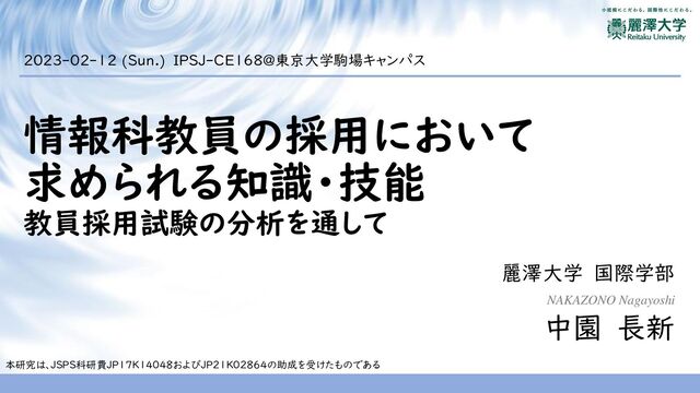 (B10)情報のデジタル化 (B11)論理回路 (B20)ユニバーサルデザイン (B40)情報デザイン (B50)HTMLとCSS (B60)Webデザイン (3) コンピュータとプログラミング (C10)コンピュータの仕組み (C20)プログラミング (C24)プログラミング – フローチャート (C21)プログラミング- JavaScript (C22)プログラミング- Python (C23)システム開発 (C40)アルゴリズム (C50)モデル化とシミュレーション (4) 情報通信ネットワークとデータの活用 (D10)ネットワーク (D30)情報システム (D40)データベース (D50)データの収集と分析 (5) その他 (E10)表計算ソフトウェア (E20)学習指導要領 2023-02-12 (Sun.) IPSJ-CE168@東京大学駒場キャンパス 情報科教員の採用において求められる知識・技能:教員採用試験の分析を通して 9