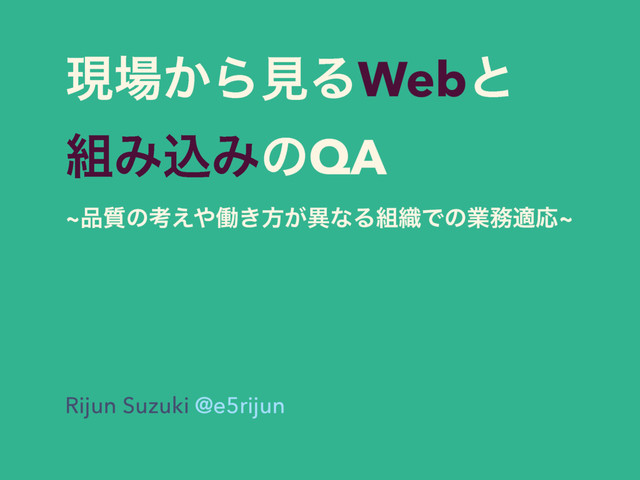 ݱ͔ΒݟΔWebͱ ΈࠐΈͷQA ~࣭ͷߟ͑ಇ͖ํ͕ҟͳΔ৫ͰͷۀదԠ~ Rijun Suzuki @e5rijun