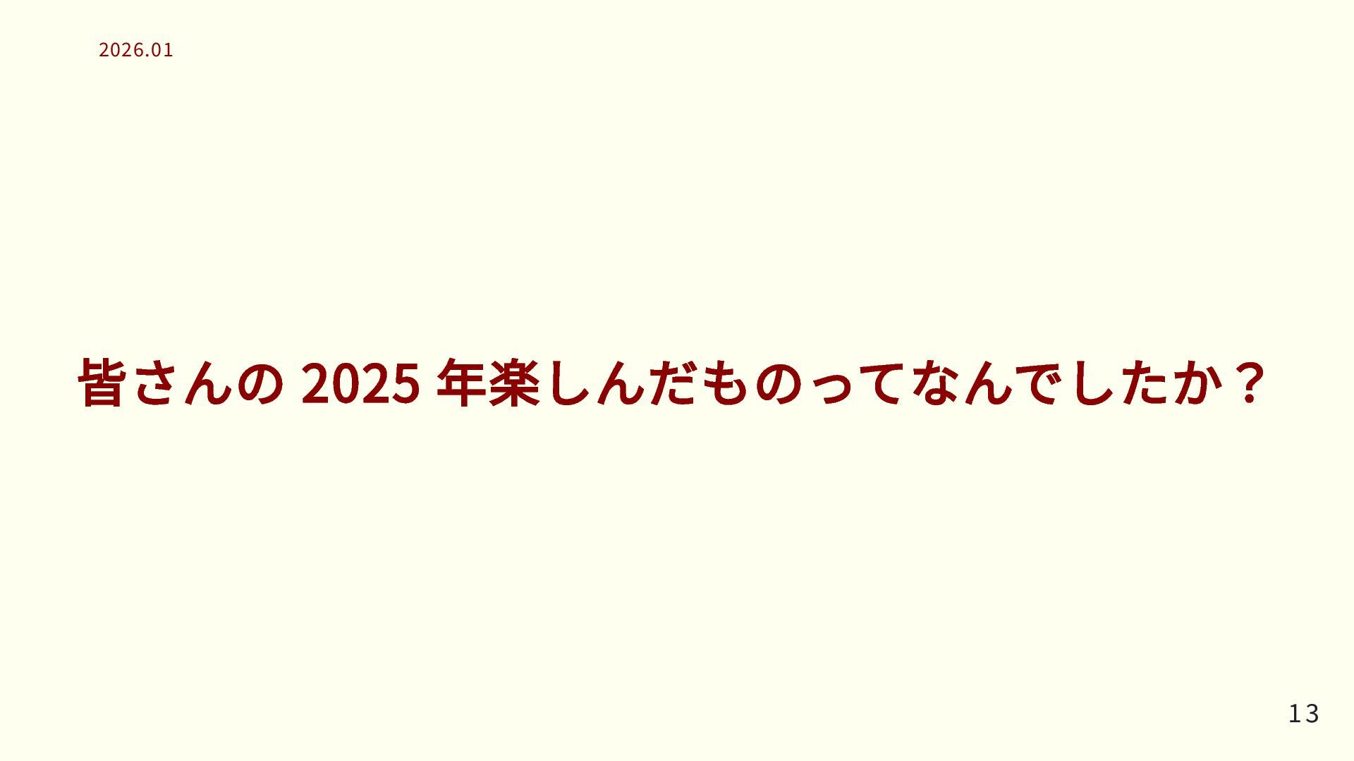 皆さんの 2025 年楽しんだものってなんでしたか? 13 13 2026.01 2026.01