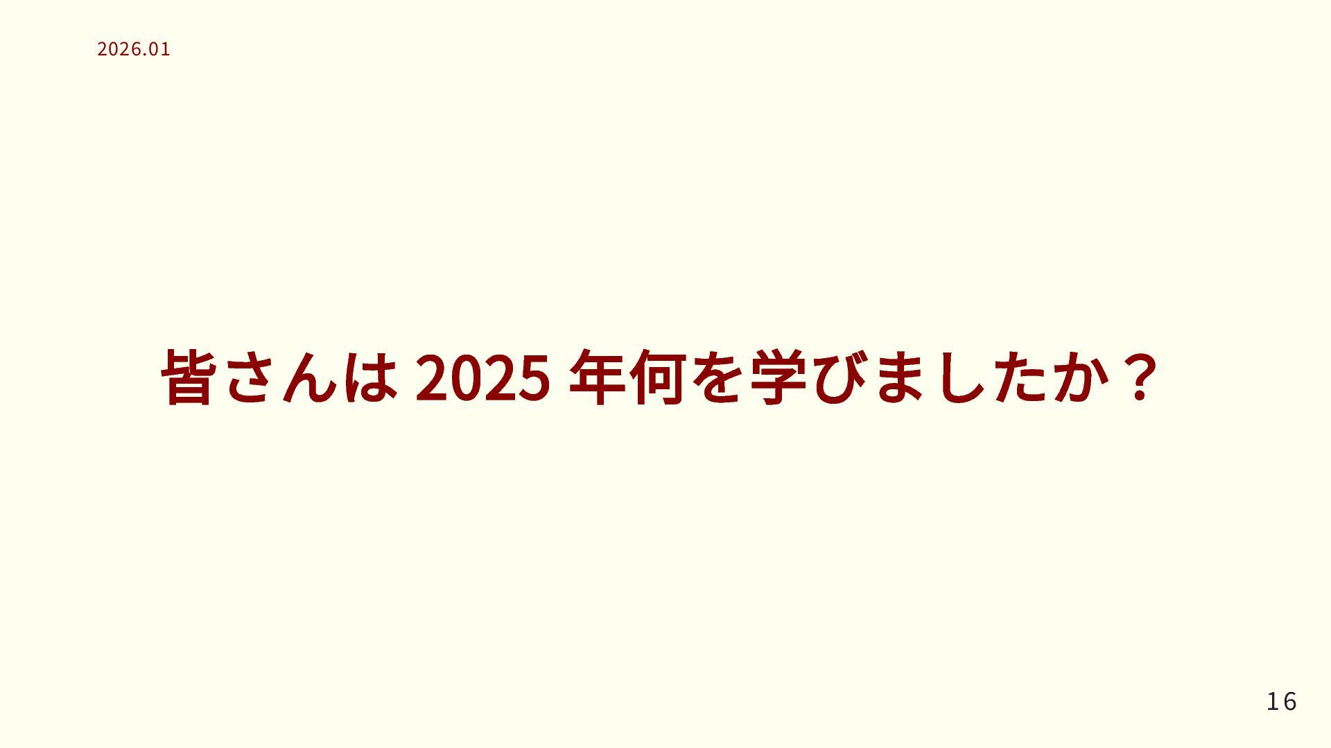 皆さんは 2025 年何を学びましたか? 16 16 2026.01 2026.01