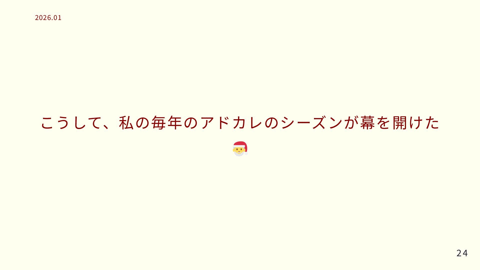 こうして、私の毎年のアドカレのシーズンが幕を開けた 24 24 2026.01 2026.01
