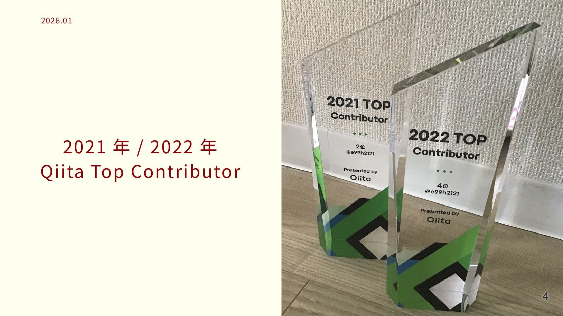 2021 年 / 2022 年 Qiita Top Contributor 2026.01 2026.01