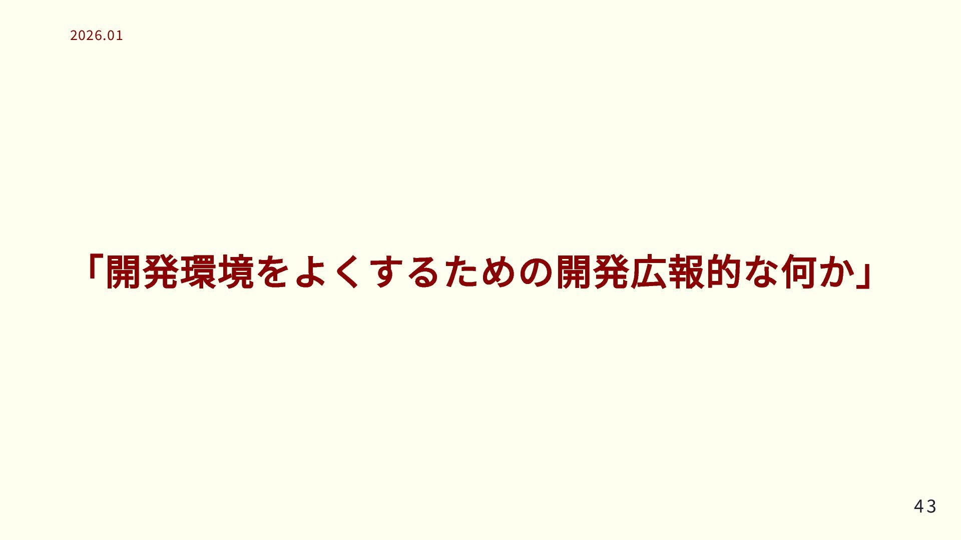 「開発環境をよくするための開発広報的な何か」 43 43 2026.01 2026.01