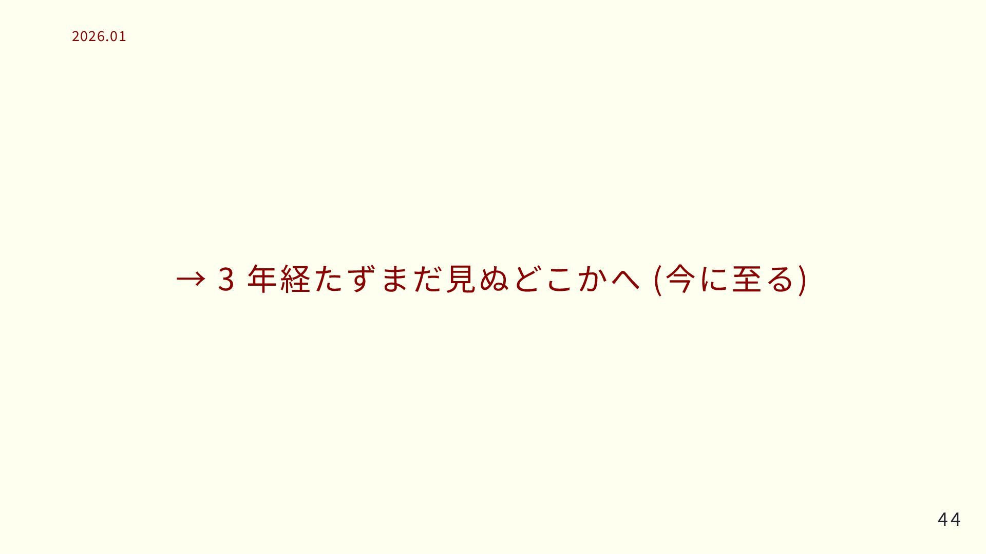 → 3 年経たずまだ見ぬどこかへ (今に至る) 44 44 2026.01 2026.01