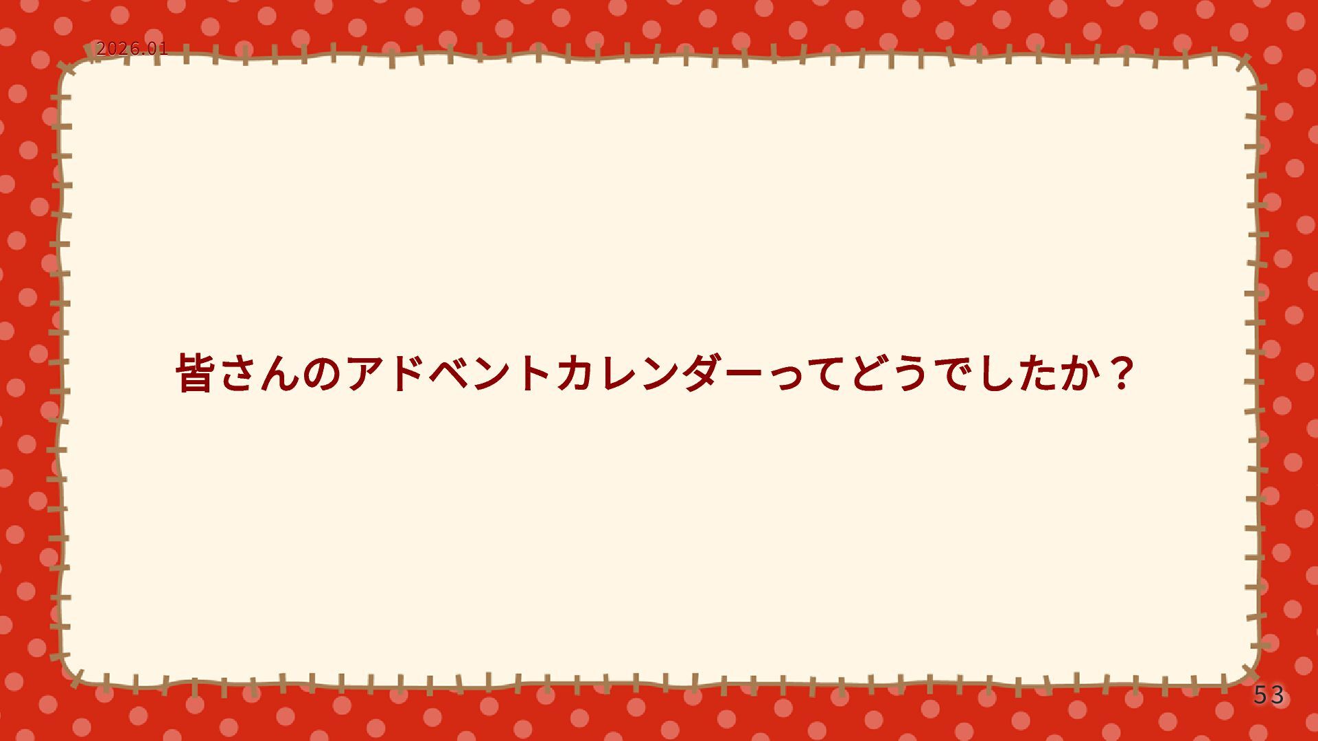 皆さんのアドベントカレンダーってどうでしたか? 2026.01 2026.01 53 53