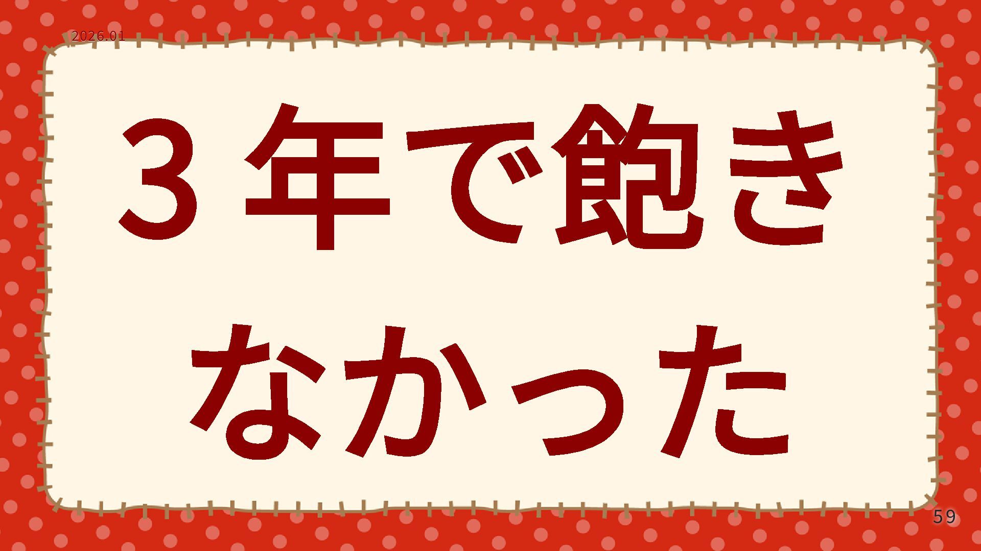 3 年で飽き なかった 2026.01 2026.01 59 59