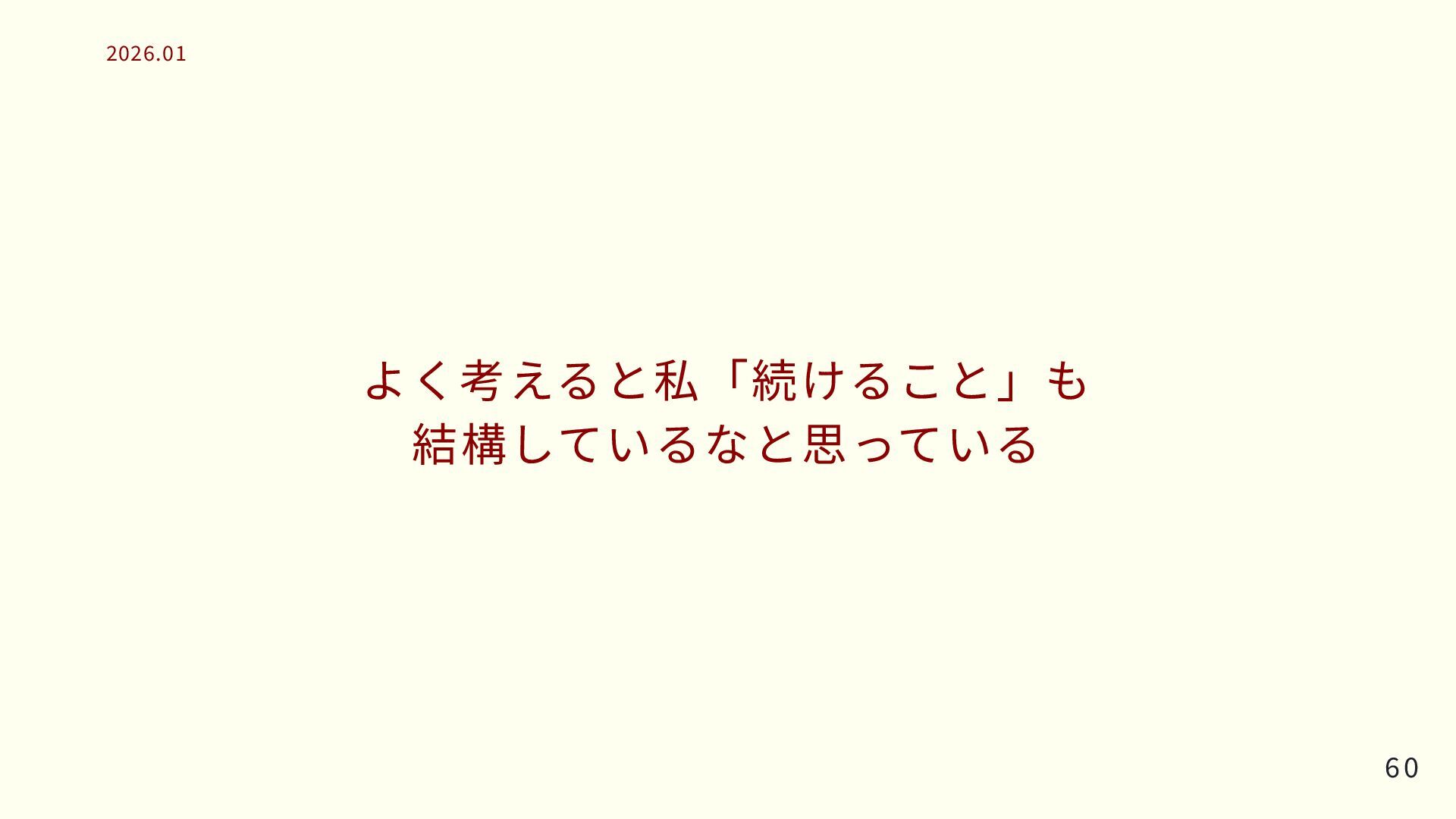 よく考えると私「続けること」も 結構しているなと思っている 60 60 2026.01 2026.01