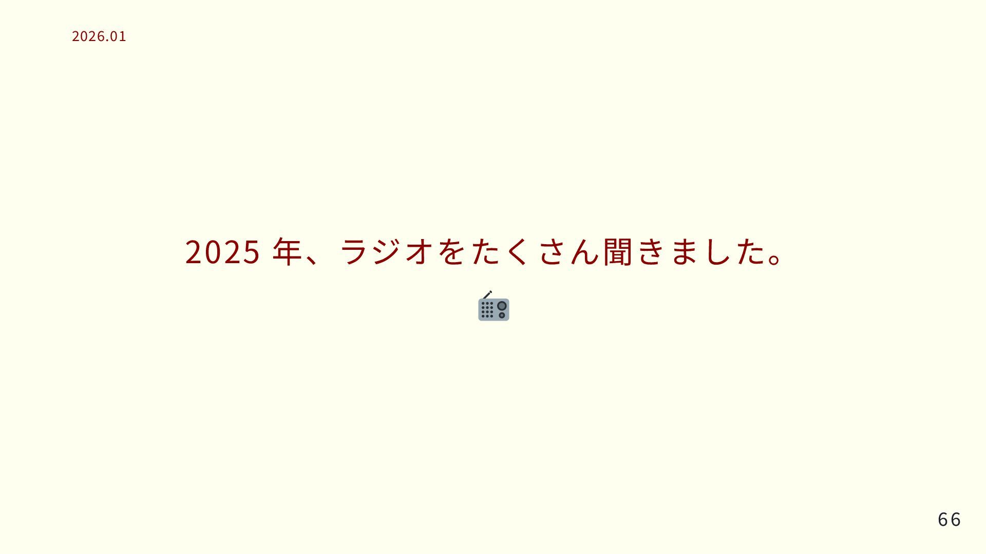 2025 年、ラジオをたくさん聞きました。 66 66 2026.01 2026.01