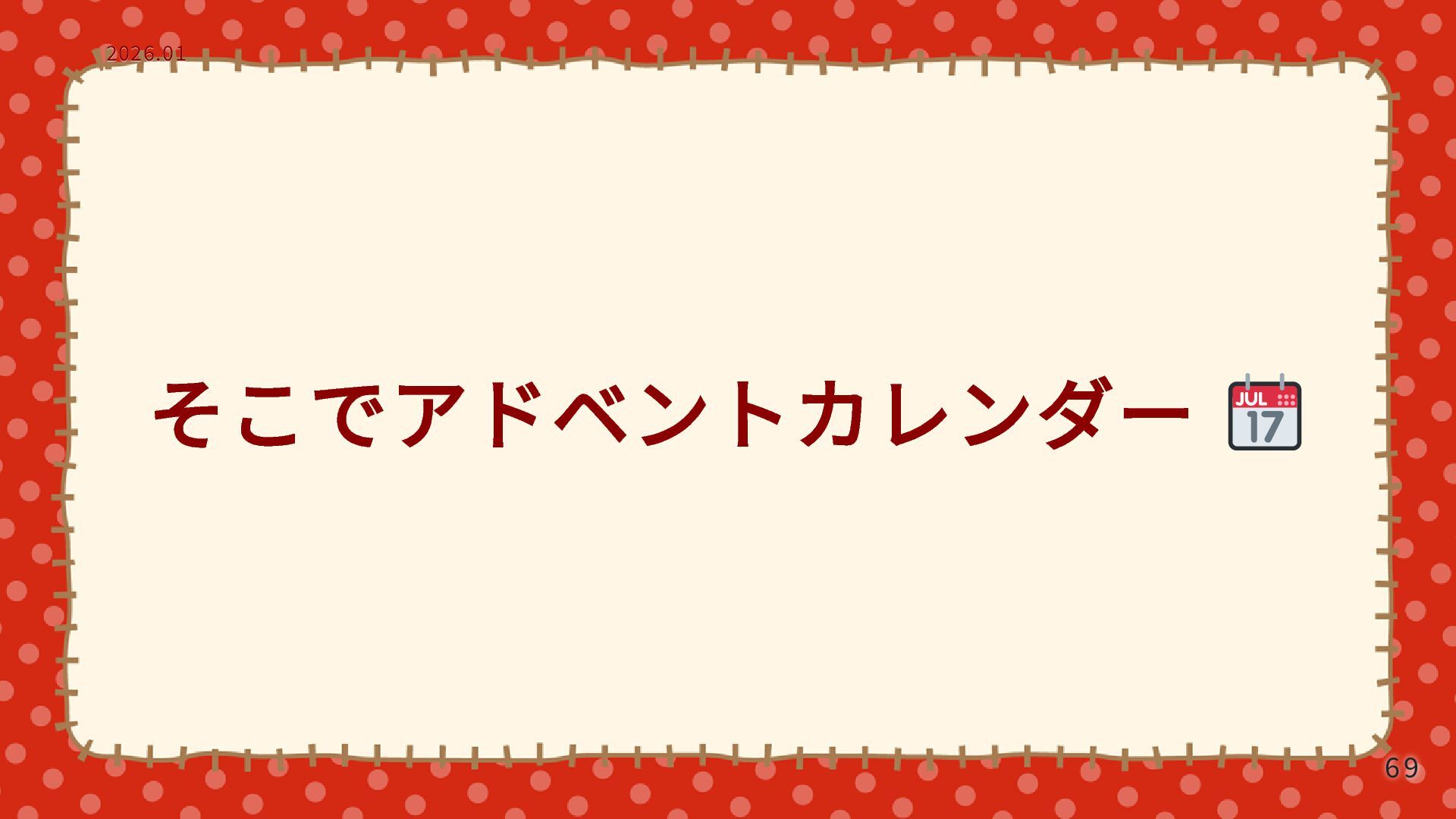 そこでアドベントカレンダー 2026.01 2026.01 69 69