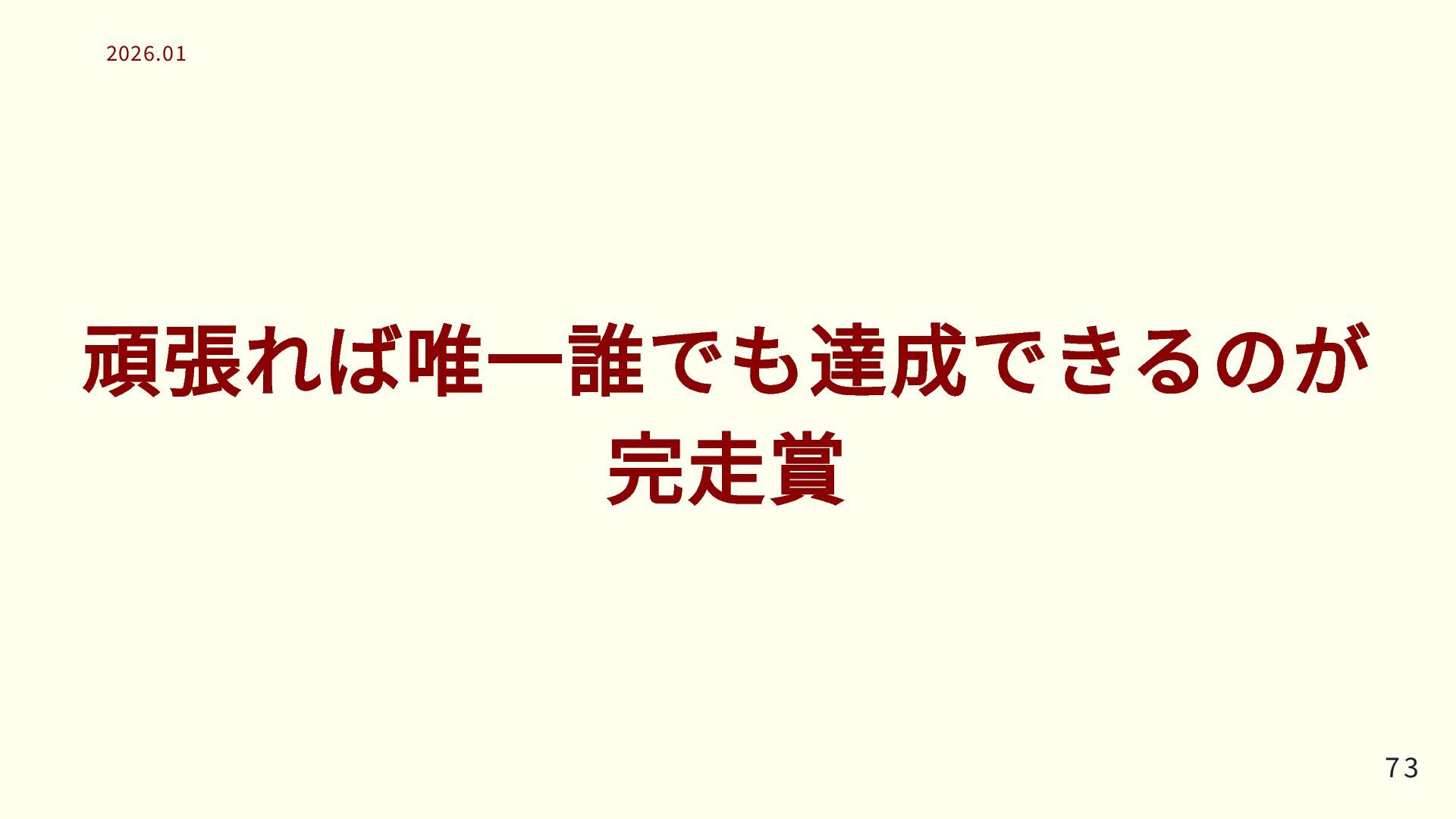 頑張れば唯一誰でも達成できるのが 完走賞 73 73 2026.01 2026.01