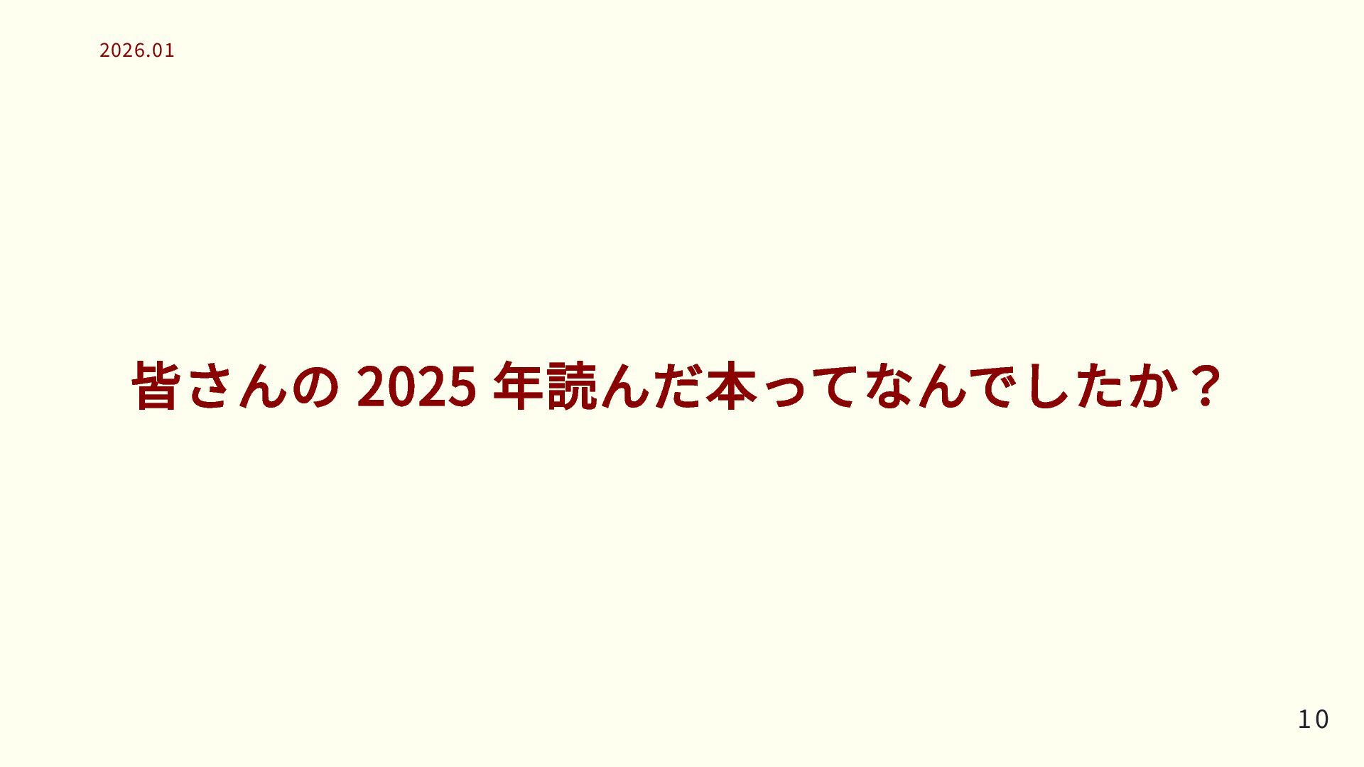 皆さんの 2025 年読んだ本ってなんでしたか? 10 10 2026.01 2026.01