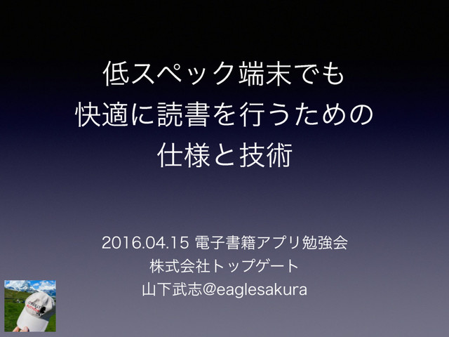 εϖοΫͰ շదʹಡॻΛߦ͏ͨΊͷ ༷ͱٕज़ ిࢠॻ੶ΞϓϦษڧձ גࣜձࣾτοϓήʔτ ࢁԼࢤ!FBHMFTBLVSB