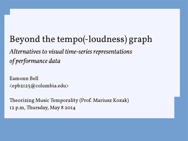 be something inside people's heads, so losing its social dimension” 2. “[understand] music to subsist in structure, which structure can be more or less resolved in to notational categories.” 3. “[conceive] of music in terms of a communicative chain passing from the composer via the performer” 4. are less than careful with the “two senses of ‘expression’: [. . .] its ordinary language meaning where it refers to mood, afect and emotion, and on the other the idea of performance expressing structure” Nicholas Cook, Beyond the Score, 31