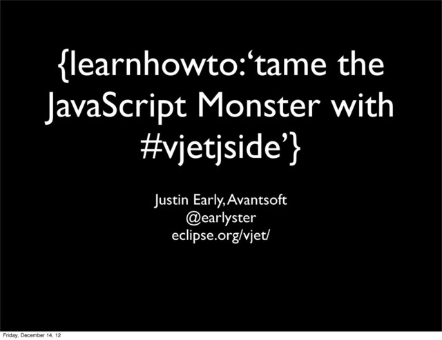 VJETDoc - you can type all js constructs • vjojs - a js library for defining types • VJET Type libs - HelloWorld and 3rd party JS • VJET Code generation Friday, December 14, 12