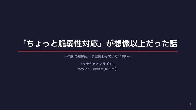 「ちょっと脆弱性対応」が想像以上だった話 〜判断の連続と、まだ終わっていない問い〜 # ツナギメオフライン.6 あべたく(@east_takumi ) 1
