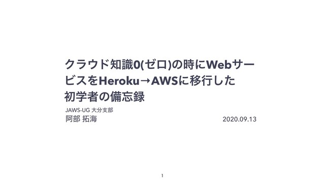 2020/09/13 (日) JAWS SONIC 2020 & MIDNIGHT JAWS 2020にて発表した登壇資料。 https://jaws-ug.doorkeeper.jp/events/109373