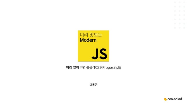 뱅크샐러드 컨퍼런스 제 3회 콘샐러드에서 발표한 자료입니다. TC39 Proposals에 대한 이야기를 담고 있습니다.