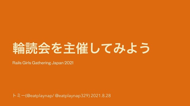ྠಡձΛओ࠵ͯ͠ΈΑ͏ Rails Girls Gathering Japan 2021 τϛʔ(@eatplaynap/ @eatplaynap329) 2021.8.28
