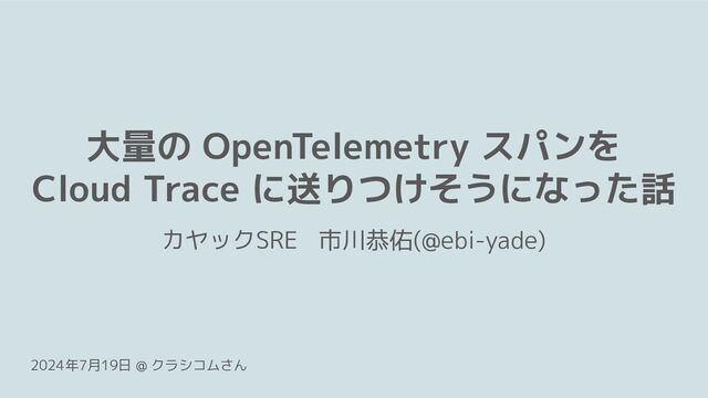 2024年7月19日 @ クラシコムさん 大量の OpenTelemetry スパンを Cloud Trace に送りつけそうになった話 カヤックSRE