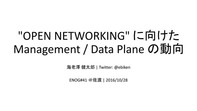 "OPEN NETWORKING" に向けた Management / Data Plane の動向
