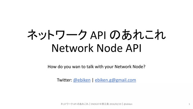 REST (like) な API を中心に各機器の実装を比較。 * Brocade vRouter * Brocade VDX * Arista EOS * Juniper JUNOS ENOG37 発表資料です。 http://enog.jp/archives/1404