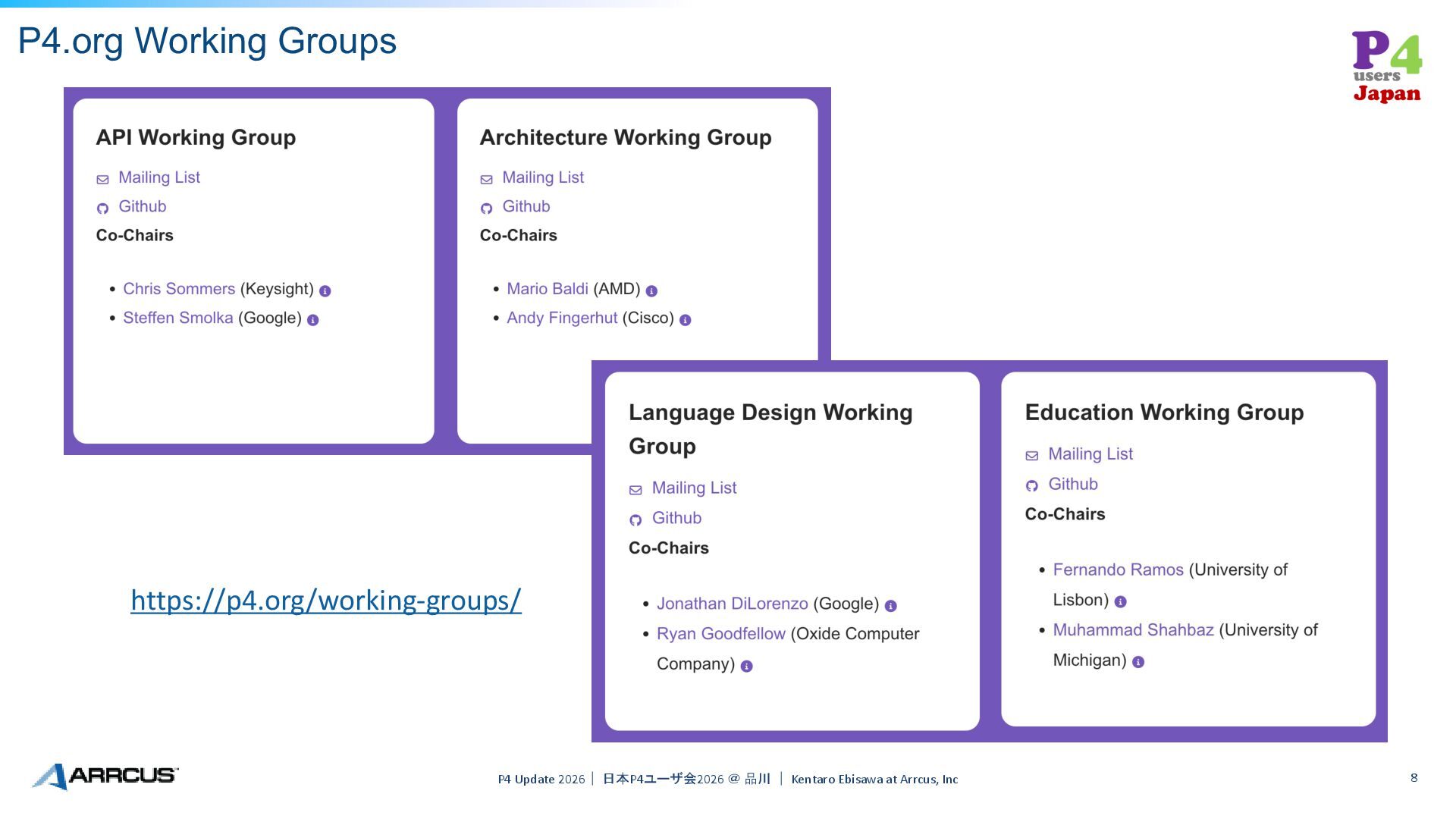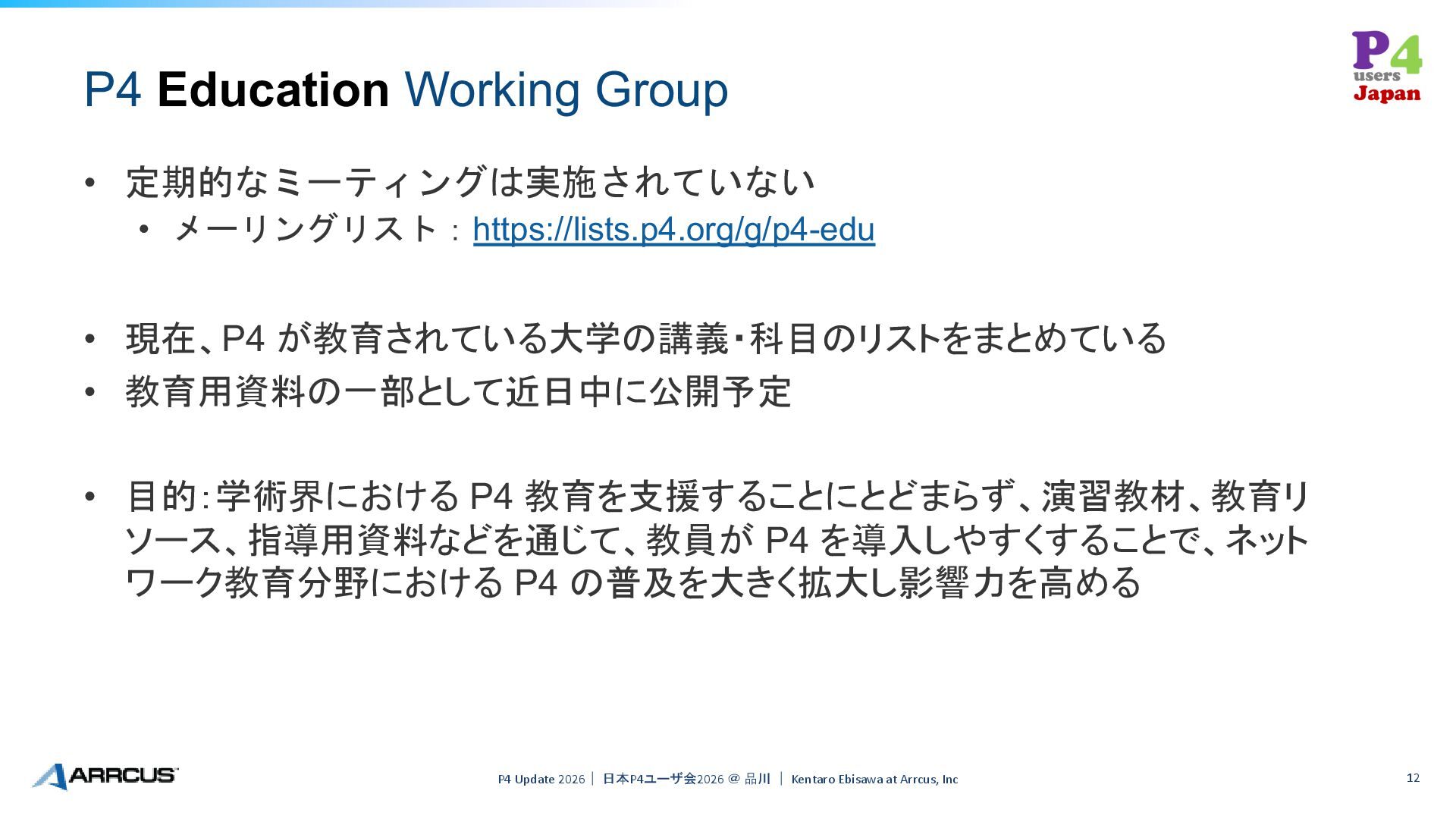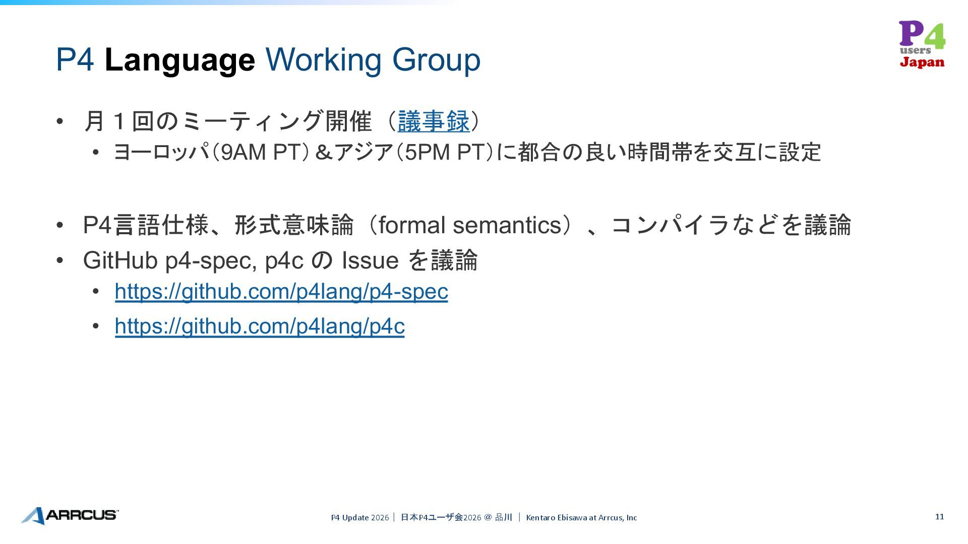 WG • P4 Language WG • P4 Education WG P4 Update 2026| 日本P4ユーザ会2026 @ 品川 | Kentaro Ebisawa at Arrcus, Inc 7