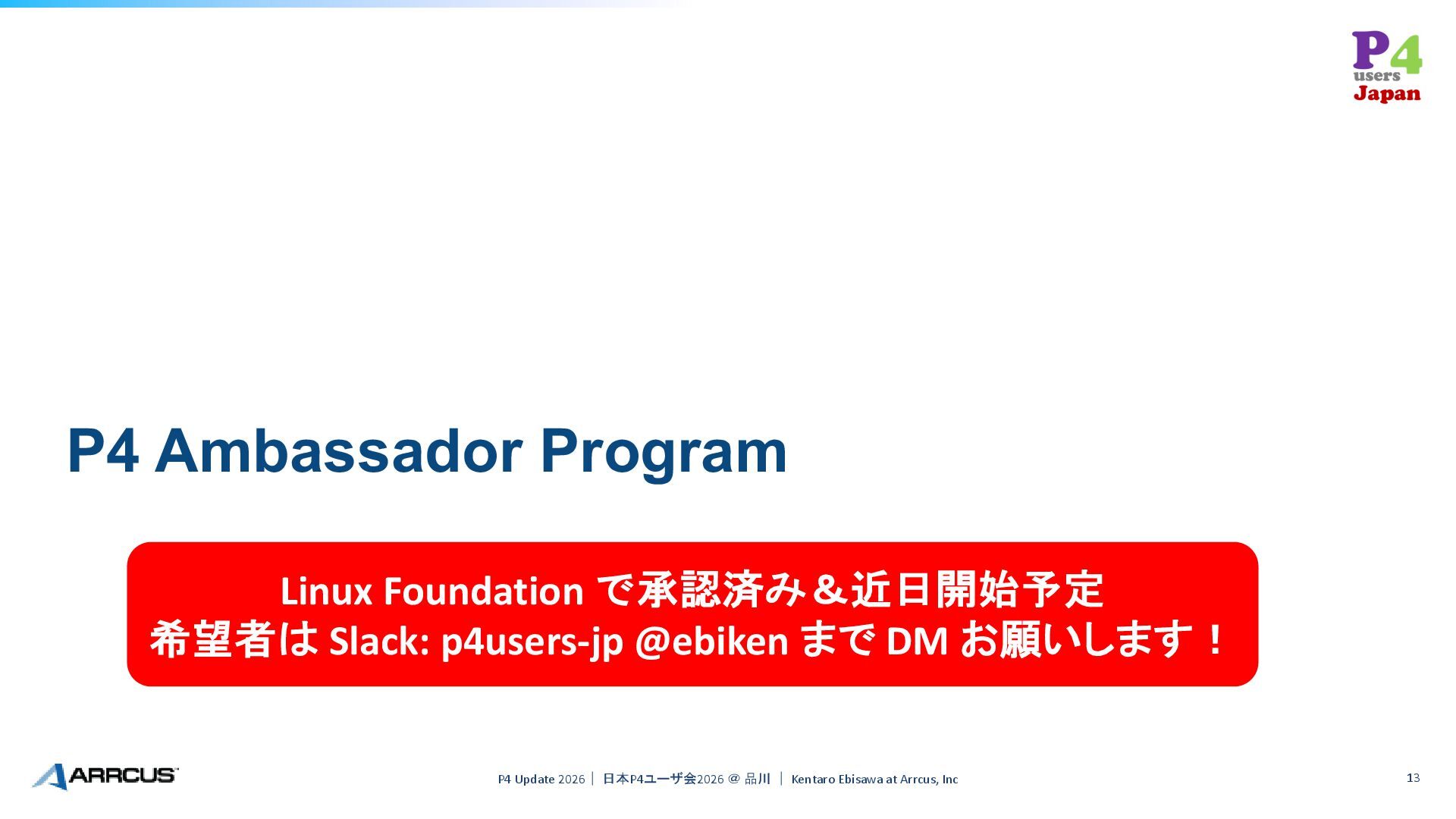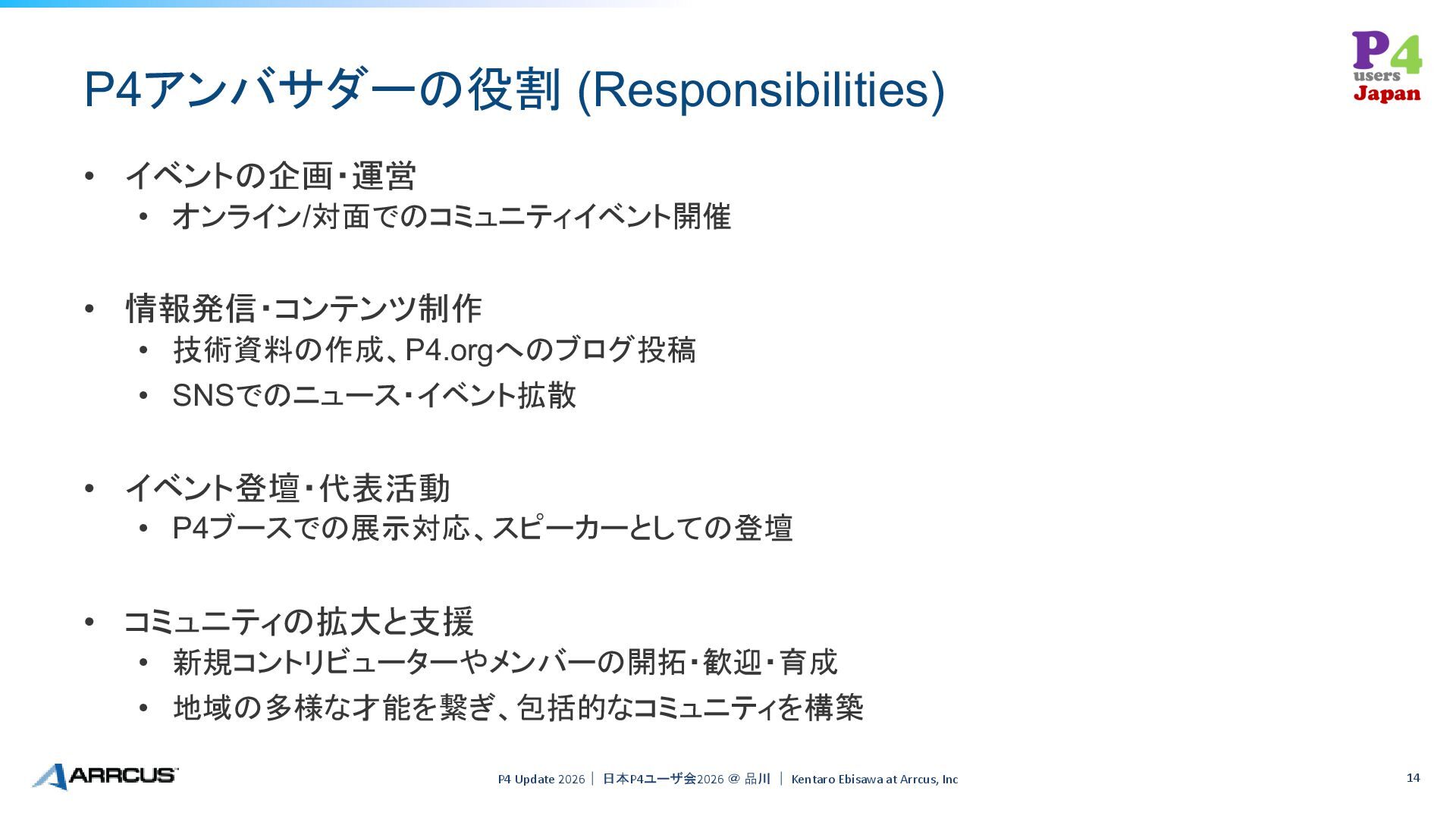 14. P4 Ambassador Program P4 Update 2026| 日本P4ユーザ会2026 @ 品川 |