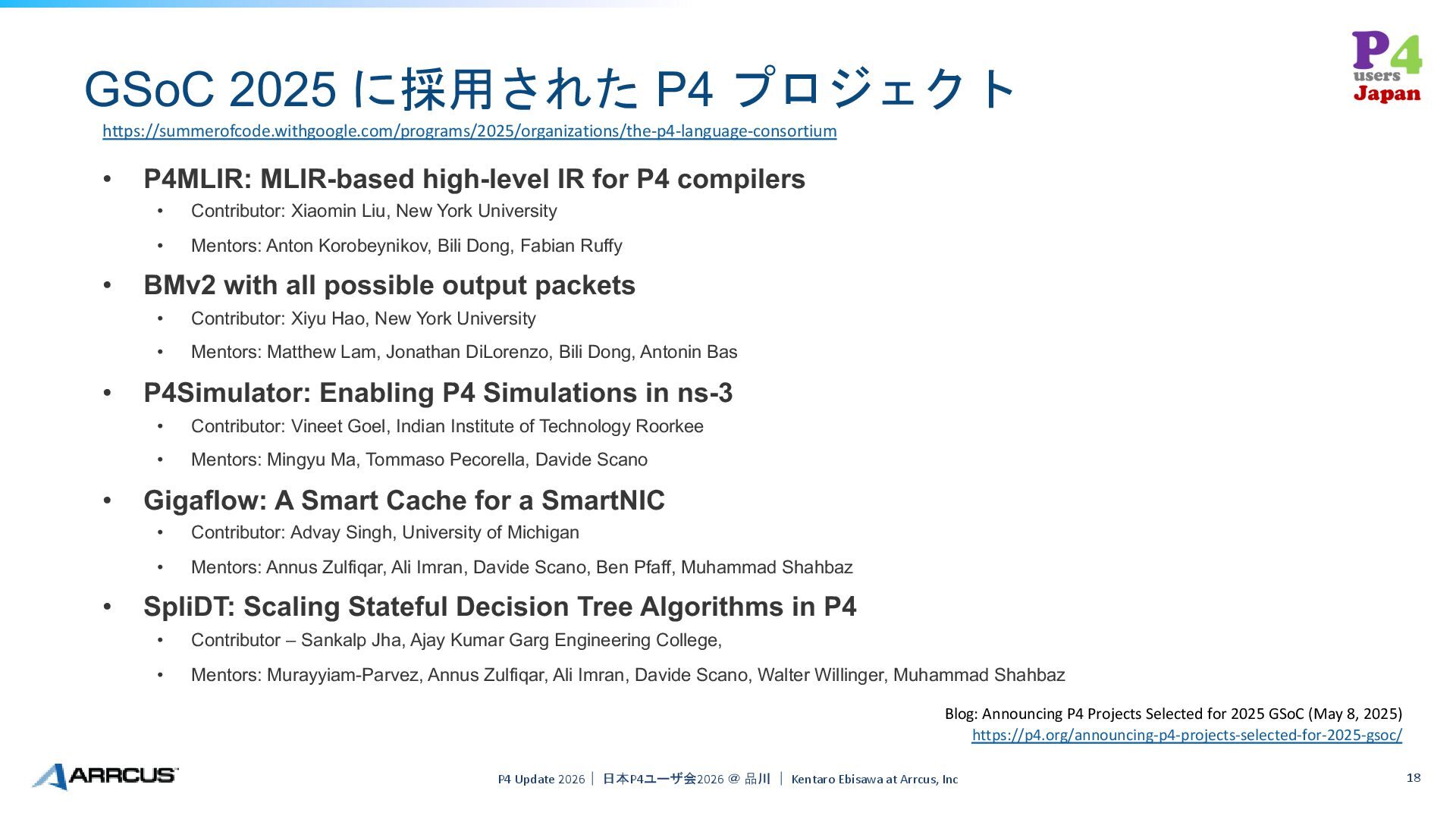 19. GSoC 2025 に採用された P4 プロジェクト P4 Update 2026| 日本P4ユーザ会2026 @