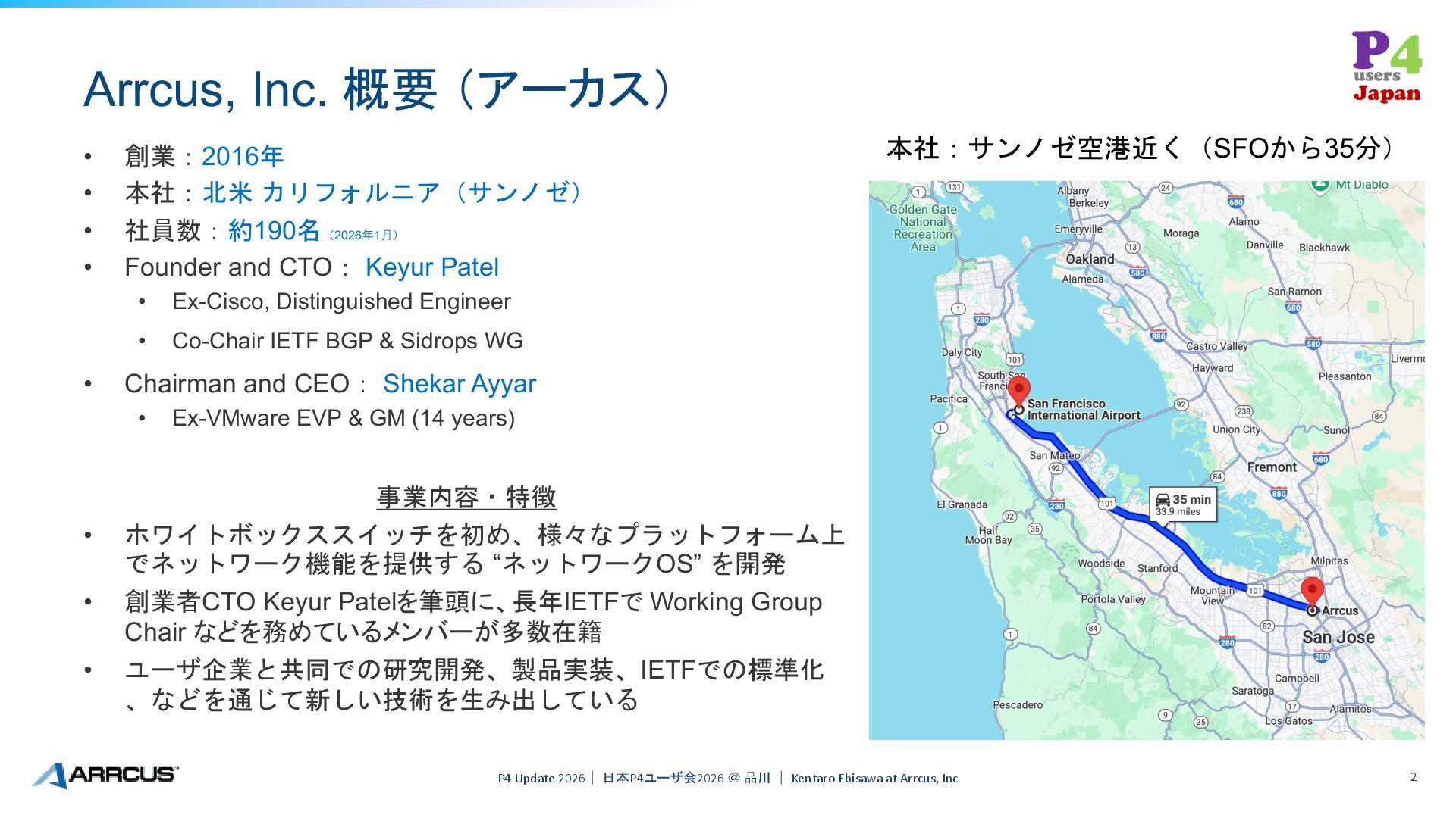 Arrcus, Inc 0 P4 Update 2026 日本P4ユーザ会2026 (2026-01-28) @ 品川