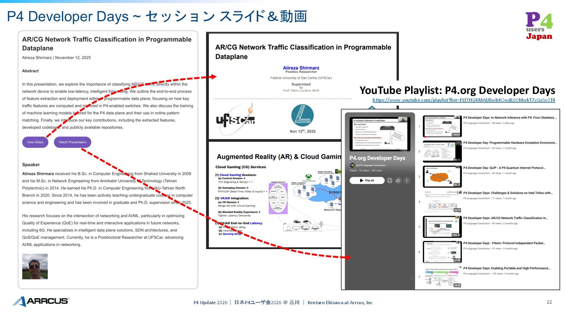 @ 品川 | Kentaro Ebisawa at Arrcus, Inc 22 YouTube Playlist: P4.org Developer Days https://www.youtube.com/playlist?list=PLf7HGRMAlJBwb4OwdL60MwkT7vGxSv0T4