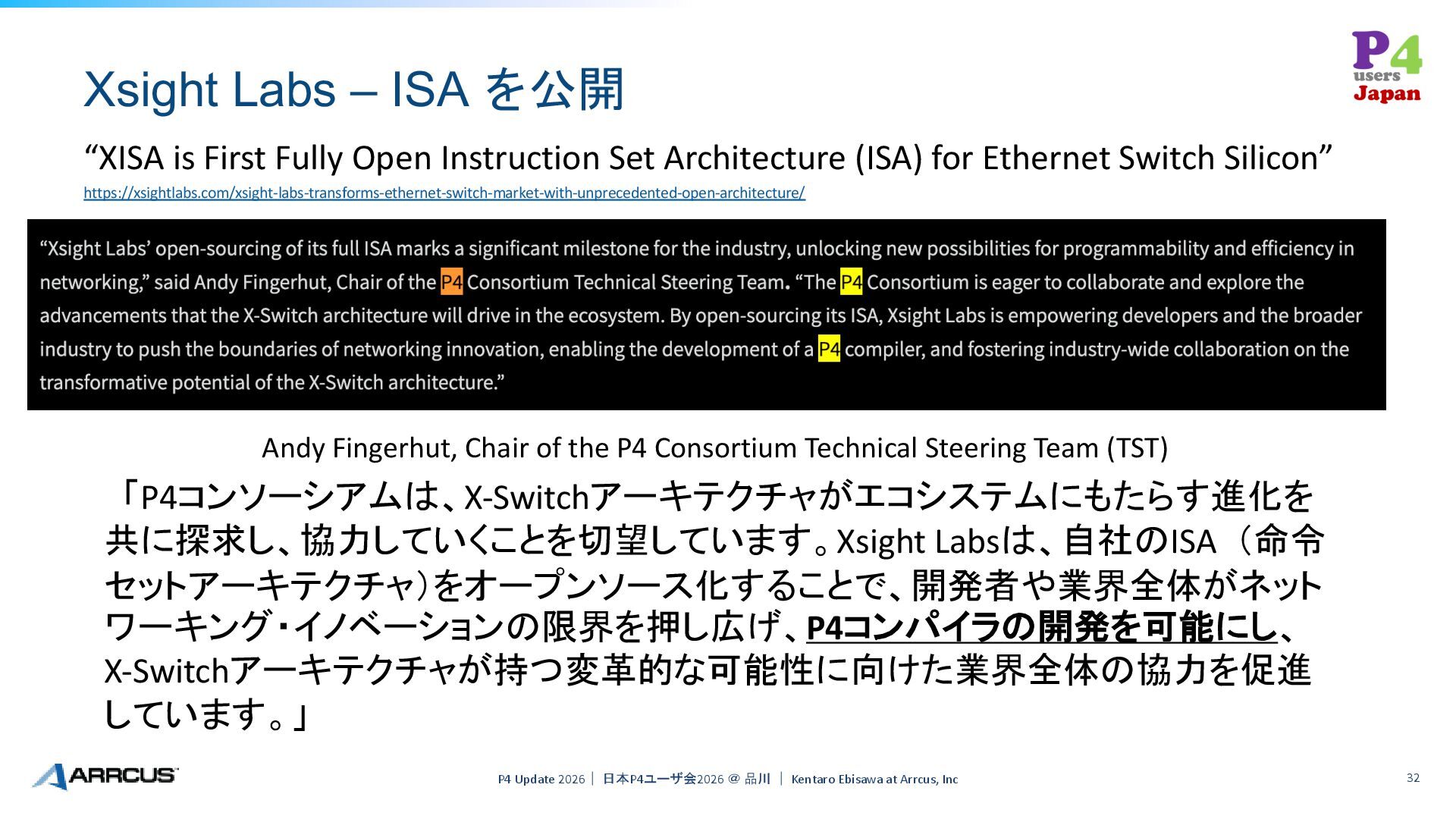 32. Xsight Labs – ISA を公開 P4 Update 2026| 日本P4ユーザ会2026 @