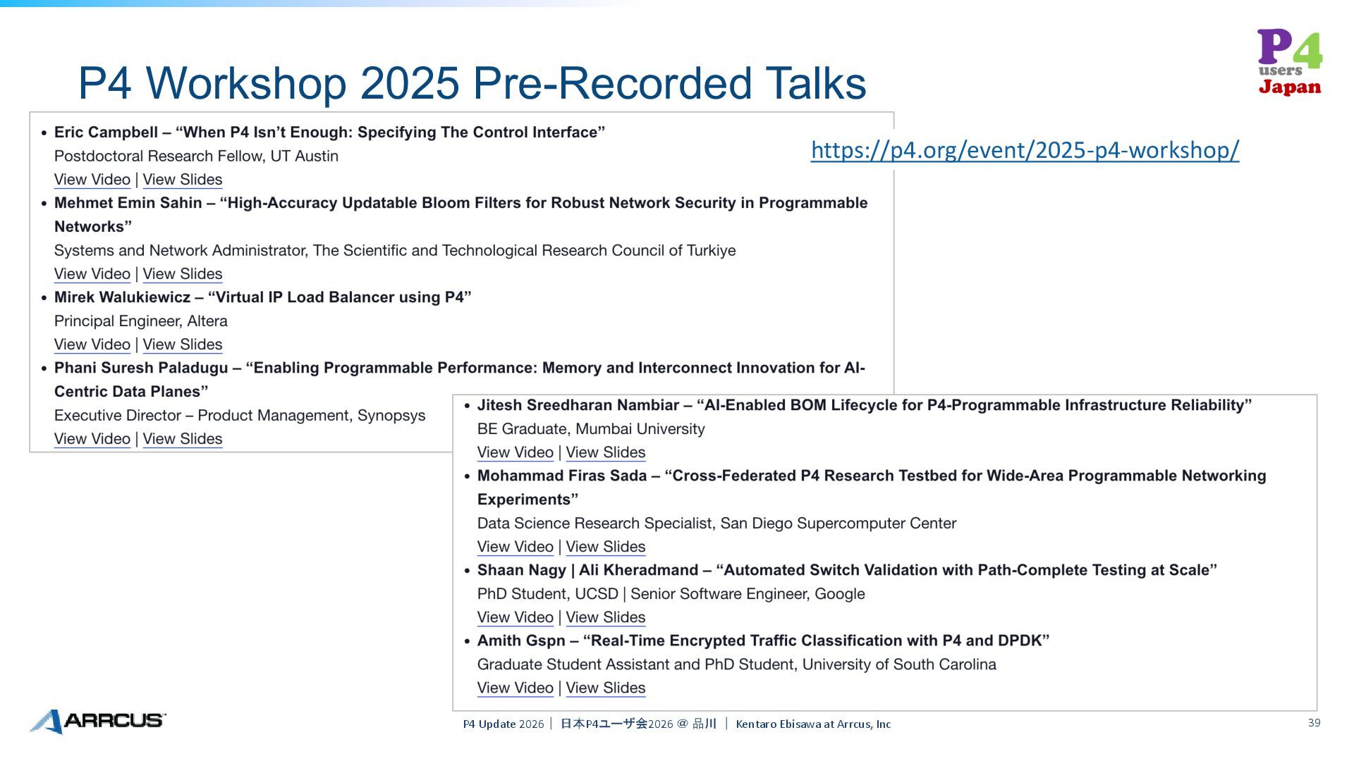 39. P4 Workshop 2025 Pre-Recorded Talks P4 Update 2026| 日本P4ユーザ会2026 @