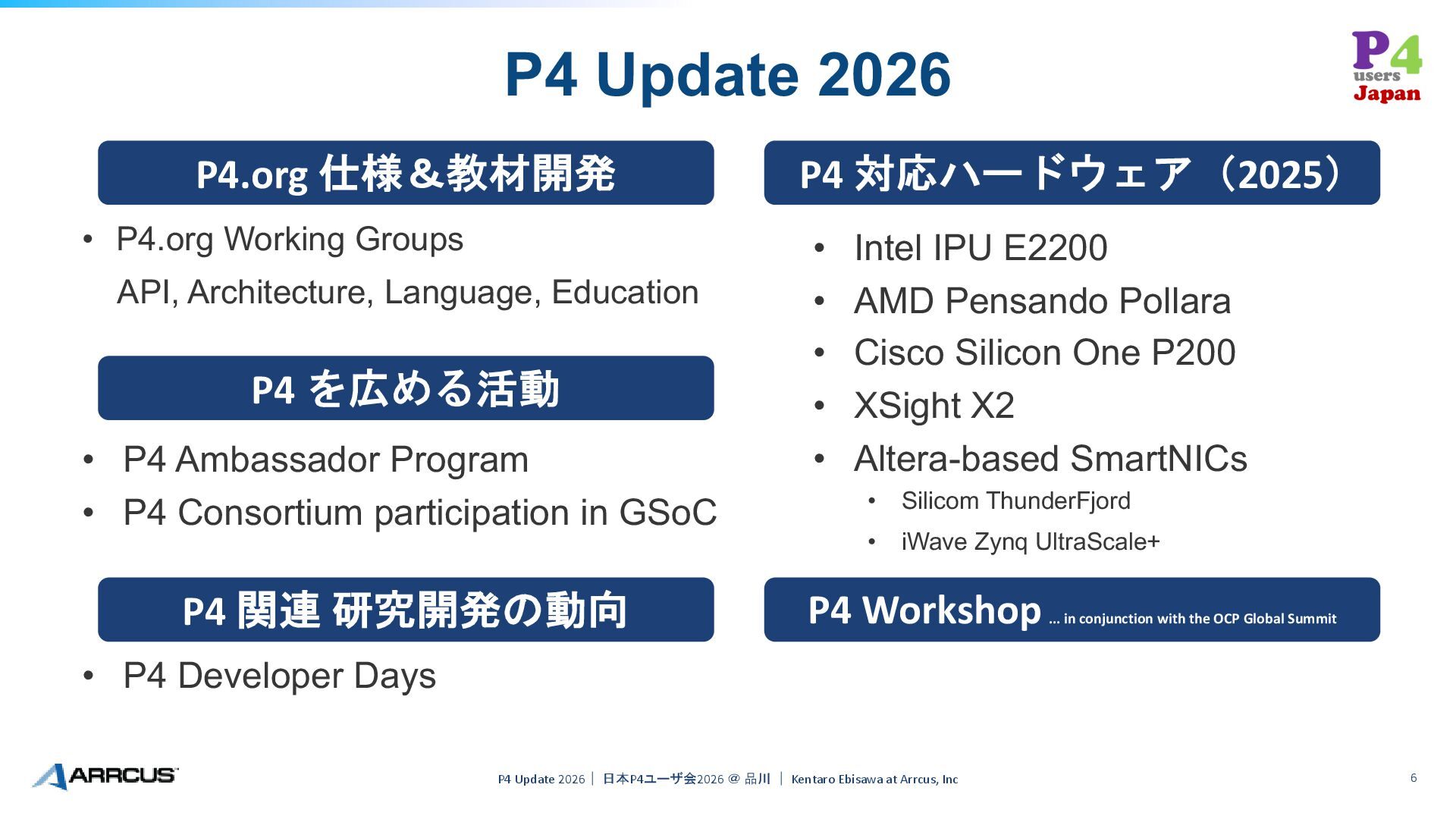 4. 取組分野 P4 Update 2026| 日本P4ユーザ会2026 @ 品川 | Kentaro Ebisawa
