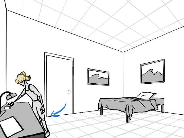 alrge, empty room. Cut back to bedroom, Alexis cries. Camera zoom out to large, empty room.
