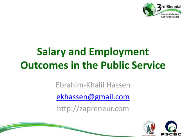 Public service employment and salaries are hotly contested issues in South Africa. This presentation provides a review of 20 years of data on employment and budgets, and raises questions for the future. Presented at the 3rd Biennial Labour Relations Relations Conference hosted by the Public Service Coordinating Bargaining Council and the Public Service Commission.