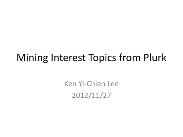 1. Posted contents (plurks) from users 2. Aggregated interest information from communities for the private users • Have to prepare – Relationships – Plurks
