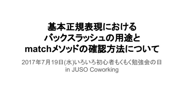 基本正規表現における バックスラッシュの用途と matchメソッドの確認方法について 2017年7月19日(水)いろいろ初心者もくもく勉強会の日 in JUSO Coworking