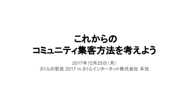 これからの コミュニティ集客方法を考えよう 2017年12月25日(月) さくらの聖夜 2017 in さくらインターネット株式会社 本社