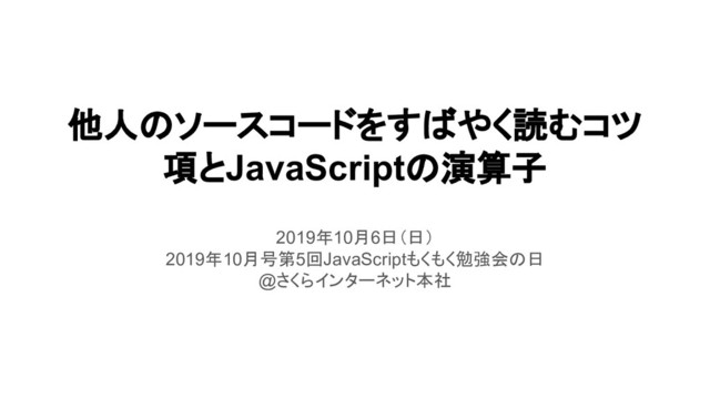 2019年10月号第5回 JavaScriptプログラミングもくもく勉強会@ さくらインターネット本社で使用したスライドです。 https://saku-love.doorkeeper.jp/events/94737