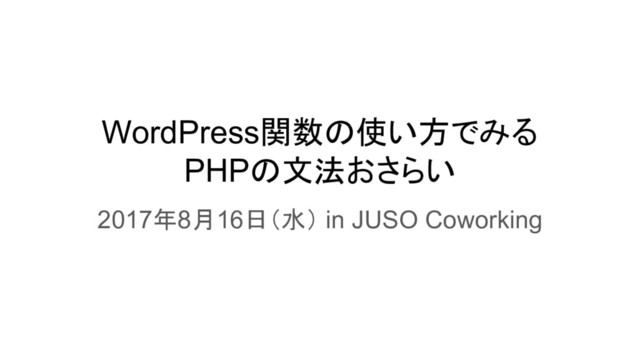 WordPress関数の使い方でみる PHPの文法おさらい 2017年8月16日(水) in JUSO Coworking