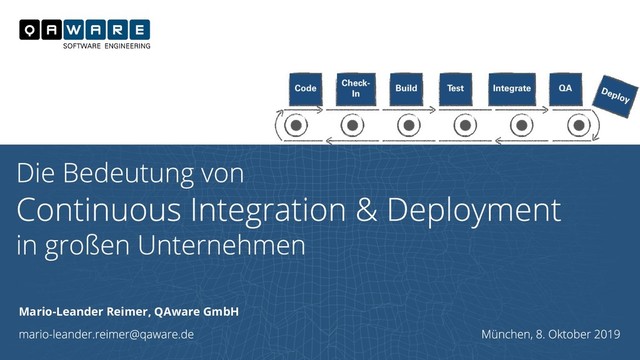 DevOps und Continuous Delivery verändern den Entwicklungsprozess nachhaltig. Statt wenigen Releases pro Jahr sind nun kontinuierliche Releases pro Tag das neue Normal. Es braucht daher eine integrierte Werkzeugkette und viel Automatisierung, um hochwertige Software kontinuierlich und effizient zu liefern. In anderen Worten: Software kommt vom Fließband. In diesem Vortrag skizzieren wir den Aufbau einer Software Supply Chain auf Enterprise Level und beleuchten aktuelle Trends und Techniken für risikoarme Releases, qualitativ hochwertige Produkte und zufriedene Teams.