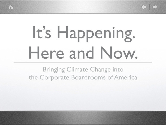 It’s Happening. Here and Now. Bringing Climate Change into the