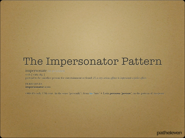 You can find the recording of this talk here: http://skillsmatter.com/podcast/agile-testing/the-impersonator-pattern