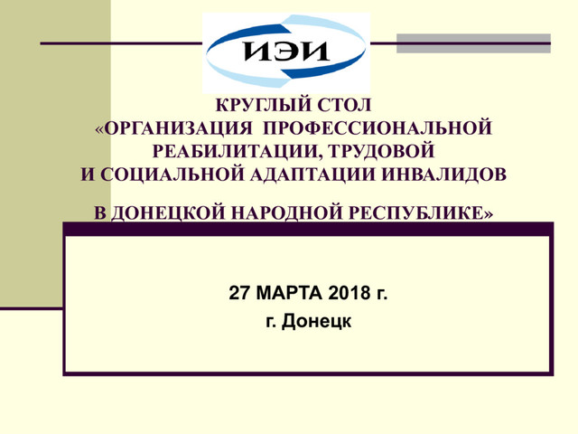 ЛИЦ С ОГРАНИЧЕННЫМИ ФИЗИЧЕСКИМИ ВОЗМОЖНОСТЯМИ Цель проекта – формирование профессиональных навыков и умений у инвалидов и прочих лиц с ограниченными физическими возможностями с перспективой их последующего трудоустройства в учреждениях финансовой, в том числе банковской системы ДНР. Задачи: - создание социальных условий достижения профессионализма и профессионального роста инвалидов и прочих лиц с ограниченными физическими возможностями; - осуществление профессиональной реабилитации инвалидов и прочих лиц с ограниченными физическими возможностями в соответствии с законодательными номами социально-трудовых отношений и потребностями рынка труда; - организация трудовой и социальной адаптации инвалидов и прочих лиц с ограниченными физическими возможностями в специальных имитационных кабинетах и в реальных практических условиях; - обеспечение функционирования центра профессиональной реабилитации, трудовой и социальной адаптации инвалидов и прочих лиц с ограниченными физическими возможностями на базе ГУ «Институт экономических исследований».